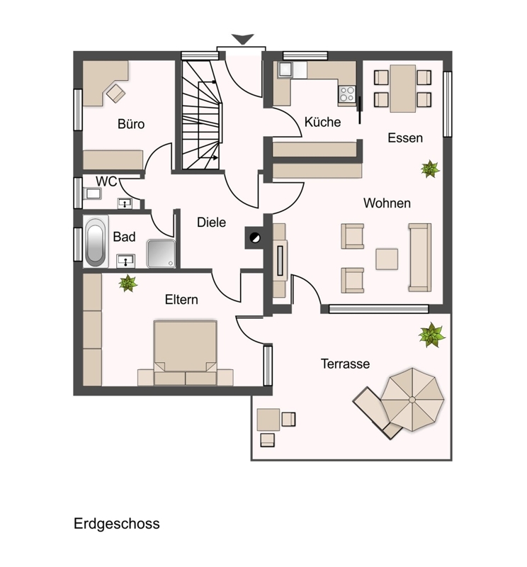 -Terrasse ca. 20 m² (nicht in der Wohnfläche von 135 m² enthalten)