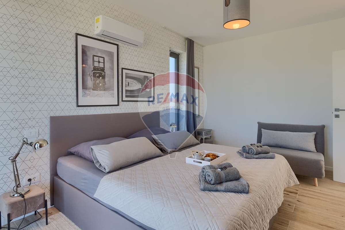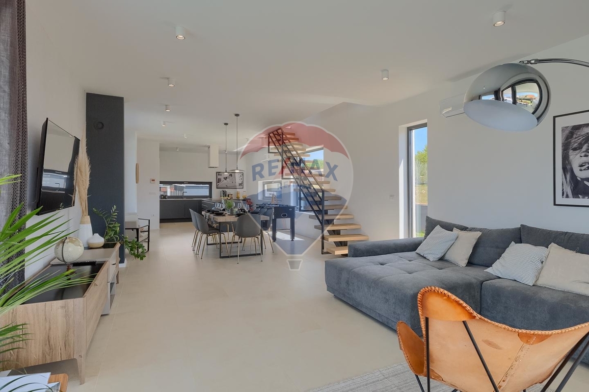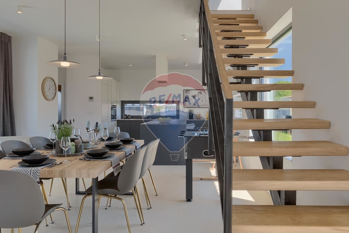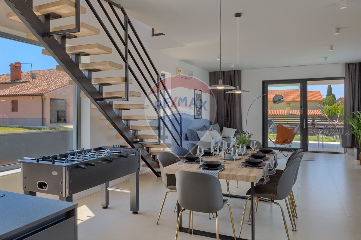 Diese neue Villa besticht mit ihrer stilvollen und zugleich gemütlichen Einrichtung. Sie befindet sich an einer perfekten Mikrolage: In der Nähe von Pula, nur 7 km von charmanten Fischerort Fažana und den schönen Stränden entfernt. Die Altstadt von Vodnjan ist um die Ecke und bietet genügend Infrastruktur.