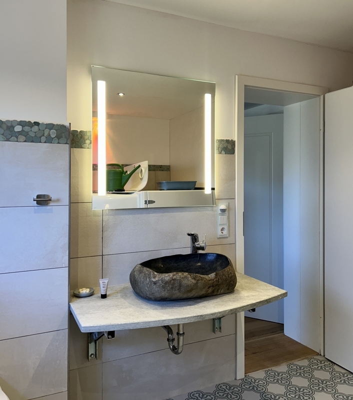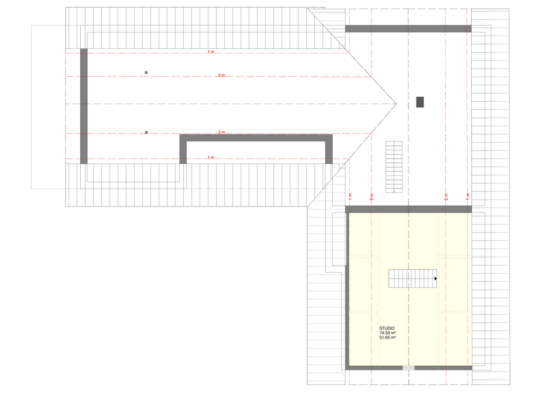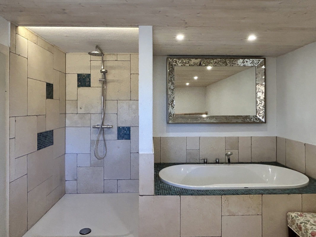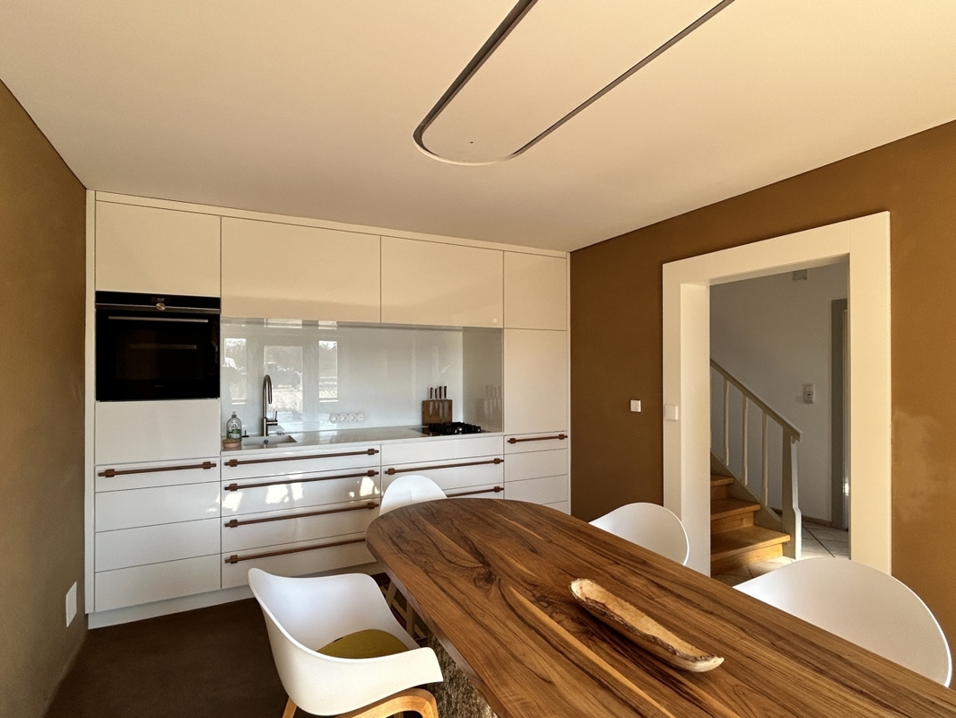 Der Neubau (2005) bietet großzügige moderne Wohnflächen und lässt sich flexibel nutzen. Im Obergeschoss befindet sich ein offener Wohnbereich mit rund 75 m², Schlafzimmern sowie ein Gästebereich mit eigenem Bad. Das Erdgeschoss beinhaltet mehrere Räume, die zu Apartments zusammengeschlossen werden können, ein Bad und weiteren praktische Räume, dazu ein Kinoraum, den Technikraum mit der Heizung.