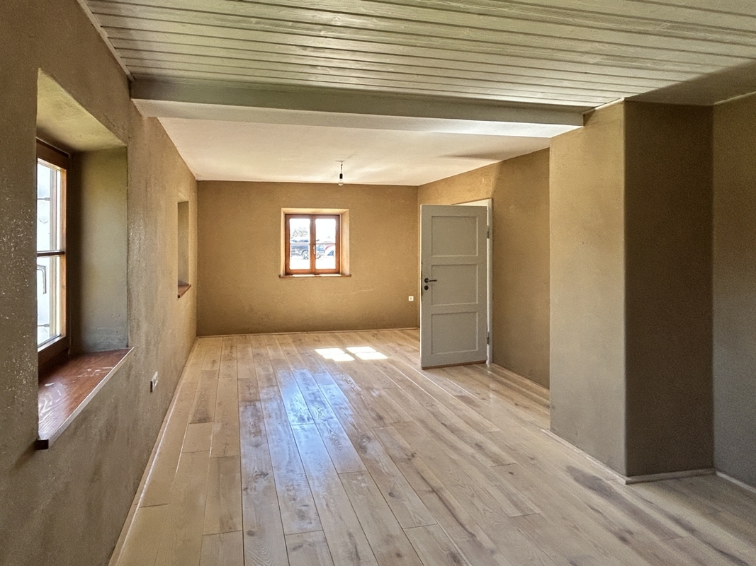 Das ursprüngliche Wohnhaus (ca. 140 m² Wohnfläche) verfügt über eine funktionale Ausstattung mit Bad, Wohnbereich, Schlafzimmern, Küche und Keller und wurde in den letzten Jahren aufwändig renoviert. Das Dachgeschoß ist ausgebaut zu einem großen Studio.