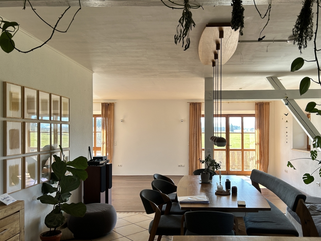Dieser außergewöhnliche Landsitz in Alleinlage bietet eine ideale Kombination aus Ruhe, Natur und vielfältigen Nutzungsmöglichkeiten. Er liegt etwa 5 km westlich von Schongau, eingebettet in die idyllische Landschaft von Oberbayern, und bietet einen atemberaubenden Blick auf die bayerischen Alpen und die Zugspitze.Das Hauptgebäude besteht aus zwei separaten Gebäudeteilen mit jeweils eigenem Charme: