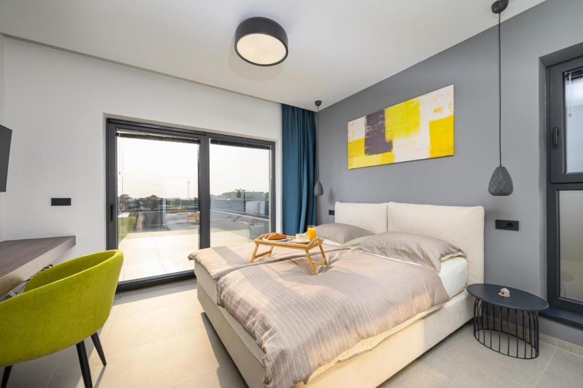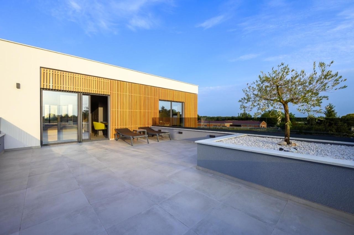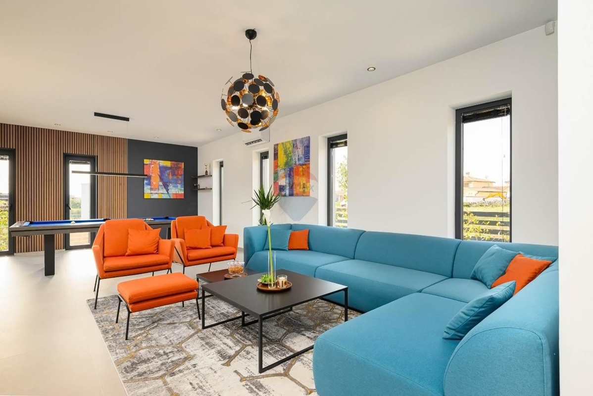 Am Rand des charmanten alten Städtchens Savicenta, etwa 15 km von Vodnjan entfernt liegt diese elegante, gehobene Villa.Im Erdgeschoss befinden sich ein geräumiges, helles Wohnzimmer und eine moderne offene Küche. Das Wohn- und Esszimmer sind mit der überdachten Terrasse und dem Außenbereich verbunden.