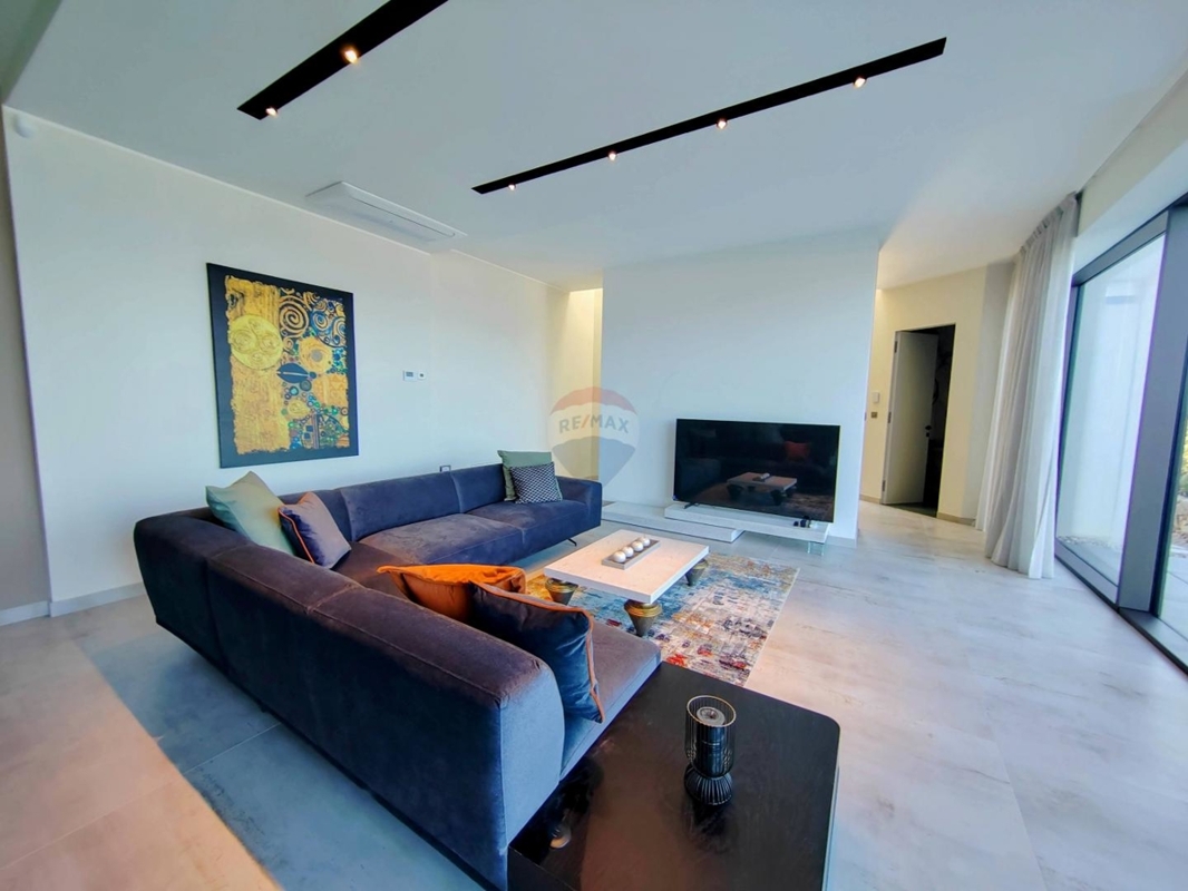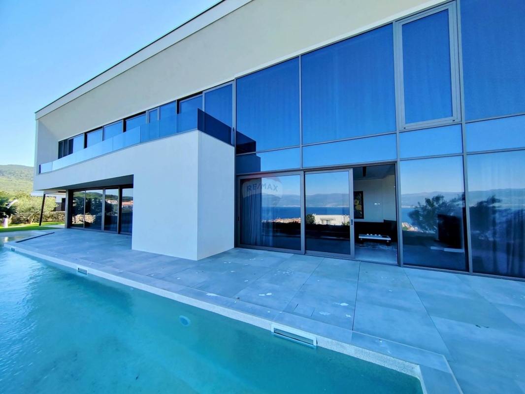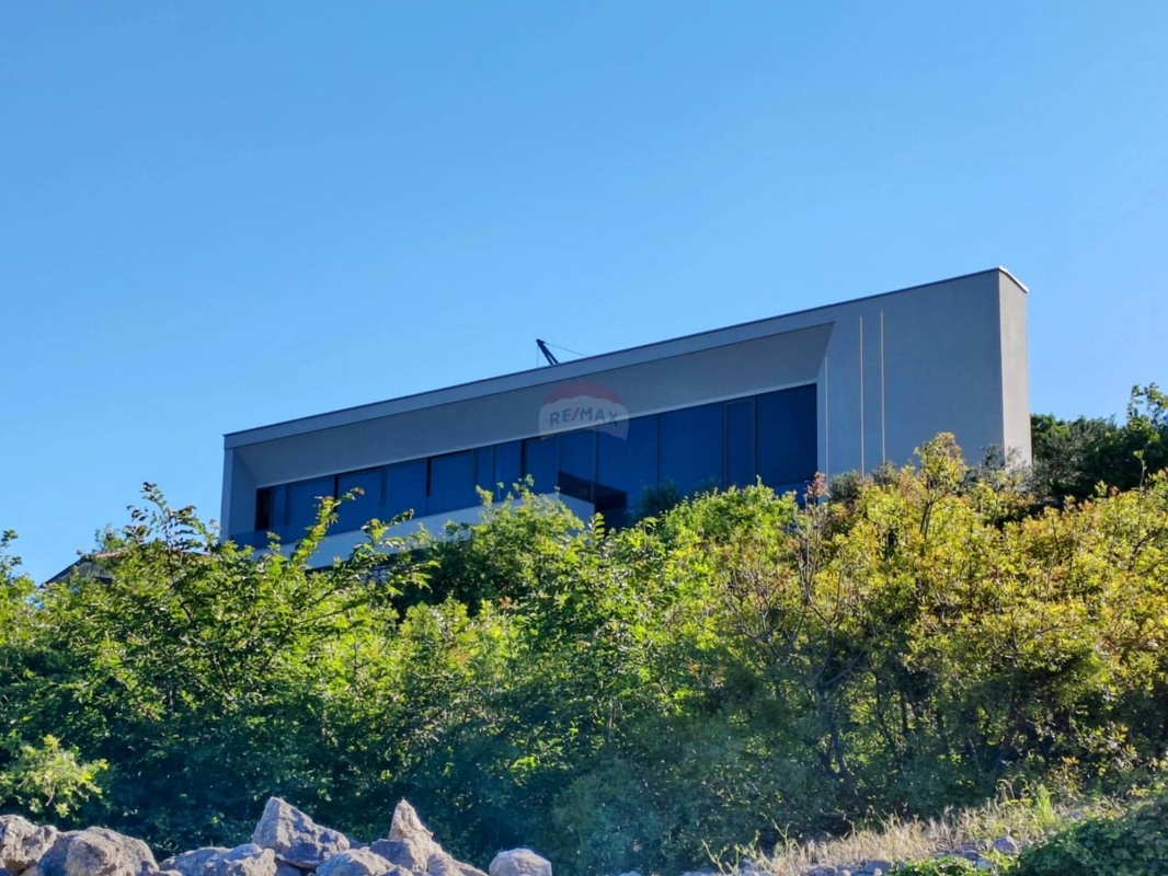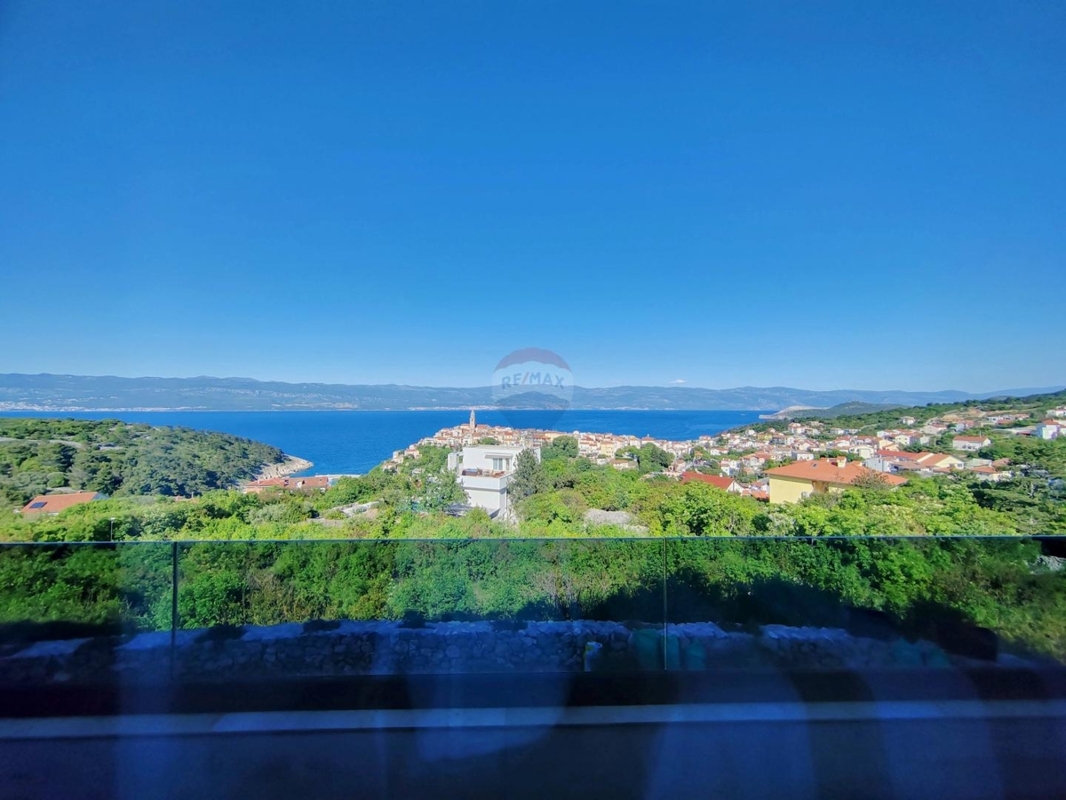 Auf einem kleinen Hügel, oberhalb der charmanten, alten Städtchen Vrbnik thront diese einzigartige neue Villa.