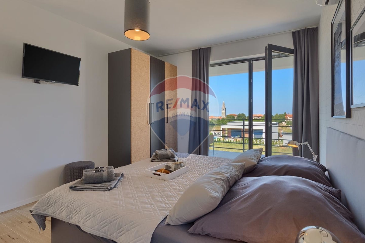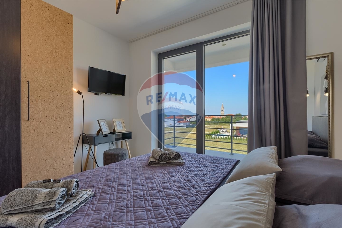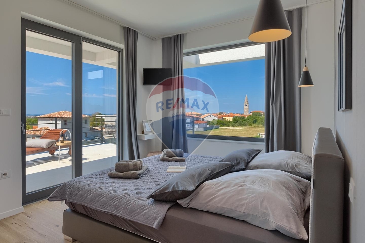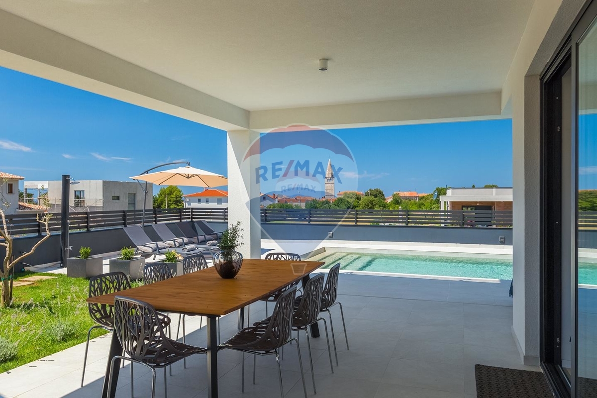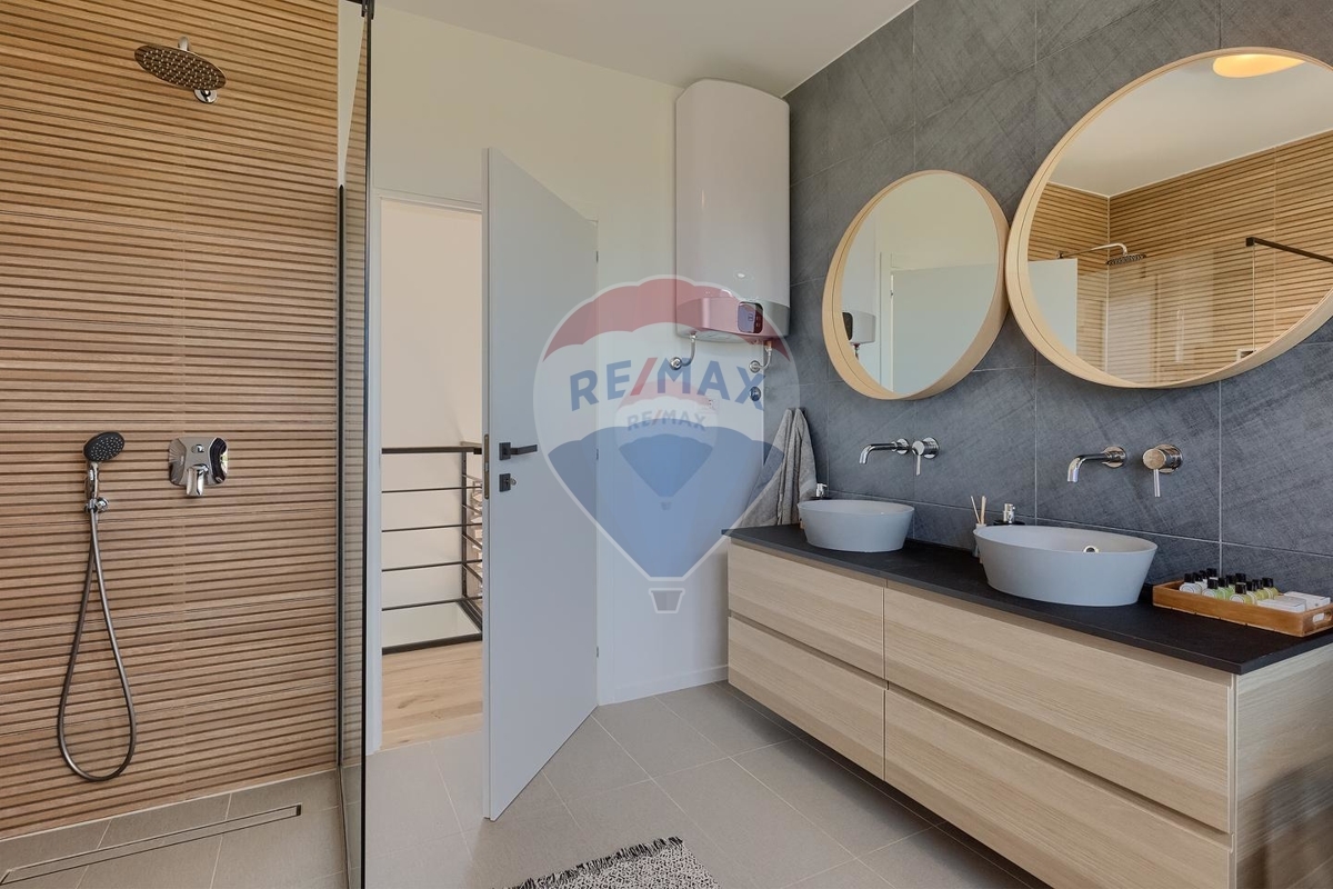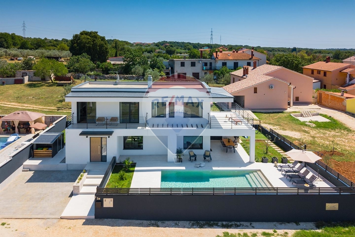 Diese neue Villa besticht mit ihrer stilvollen und zugleich gemütlichen Einrichtung. Sie befindet sich an einer perfekten Mikrolage: In der Nähe von Pula, nur 7 km von charmanten Fischerort Fažana und den schönen Stränden entfernt. Die Altstadt von Vodnjan ist um die Ecke und bietet genügend Infrastruktur.Im Erdgeschoss erwartet Sie ein geräumiges, offenes Wohnzimmer, mit Küche und Essbereich. Ein kleines Bad mit Toilette befindet sich auch auf dieser Etage. Vom Wohnzimmer aus gelangt man auf eine überdachte Terrasse mit Sommerküche, mit Blick auf den Pool und die Umgebung von Galižana.