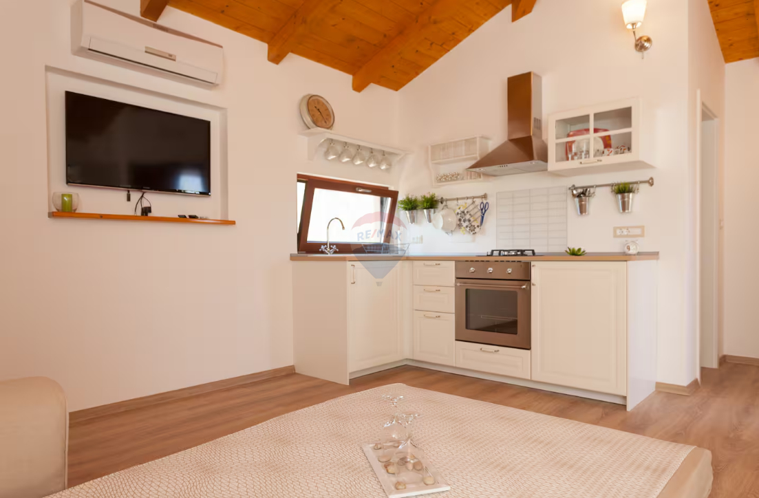 Besonderes Immobilienangebot aufgrund der tollen Lage – idyllisch ruhig und grün, während die Ortsmitte mit Infrastruktur zu Fuß erreichbar ist und das Meer nur 5 Kilometer entfernt ist.