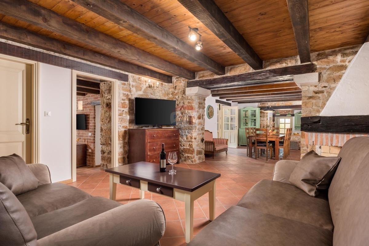 Hinterland von Porec, kleine Ortschaft in der Gemeinde Tinjan. Entfernung zum Zentrum Porec: ca. 20 km, Entfernung zur Altstadt Rovinj: ca. 30, Entfernung zum Meer: ca. 20 km, In der näheren Umgebung, im Radius von etwa 5 km finden Sie Einkaufsmöglichkeiten und Restaurants.Ausstattung: