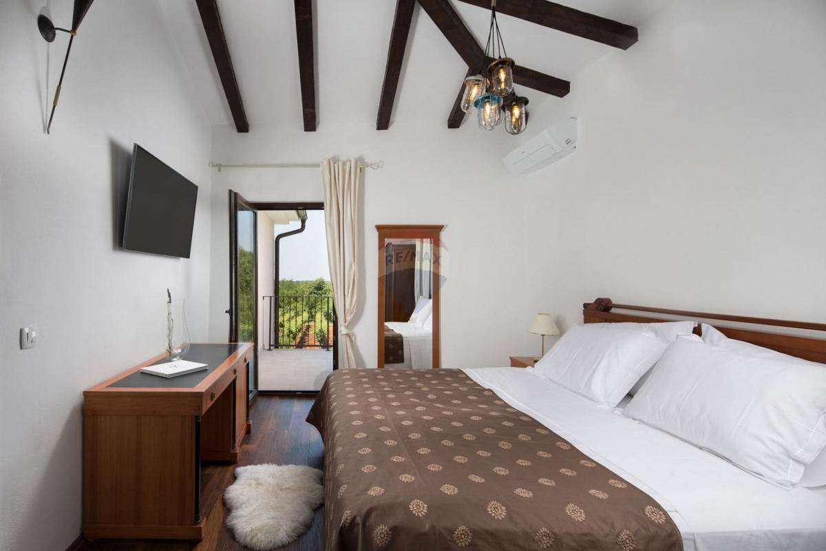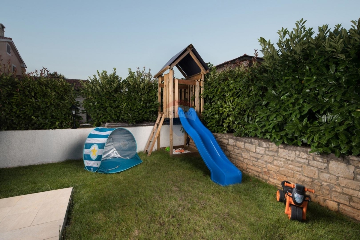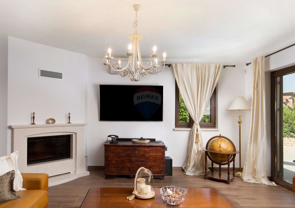 Gemeinde Višnjan, in der idyllischen Umgebung von Poreč. In Višnjan finden Sie Lebensmittel-Geschäfte, Cafés und Gastronomien, währen Sie in der Umgebung verschiedene Angebote der Agrikultur und Winzer finden. Poreč und das Meer sind etwa 15 Fahrminuten entfernt.Ausstattung: