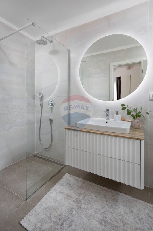Diese exklusive Villa überzeugt von außergewöhnlicher und hochwertiger Qualität. Durch die idyllische Lage ist für Erholung, Ruhe und Privatsphäre gesorgt.Das Erdgeschoss verfügt über einen geräumigen Wohn-Ess-Bereich mit großer Küche und Kamin, ein Schlafzimmer mit eigenem Bad und einen Technikraum. Der Wohnbereich ist verbunden mit der überdachten Terrasse sowie ein zusätzliches Badezimmer.