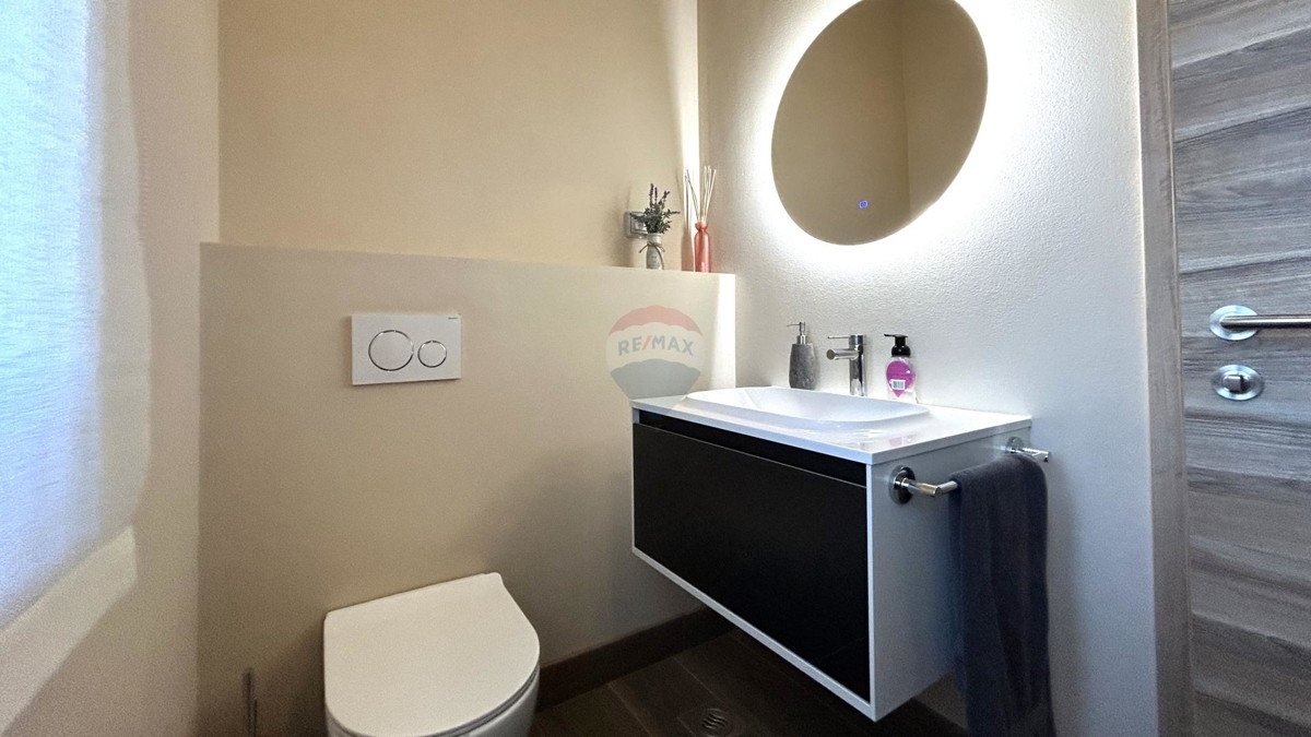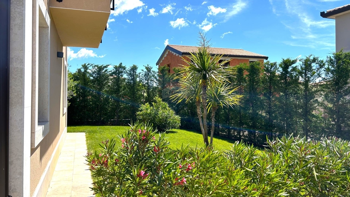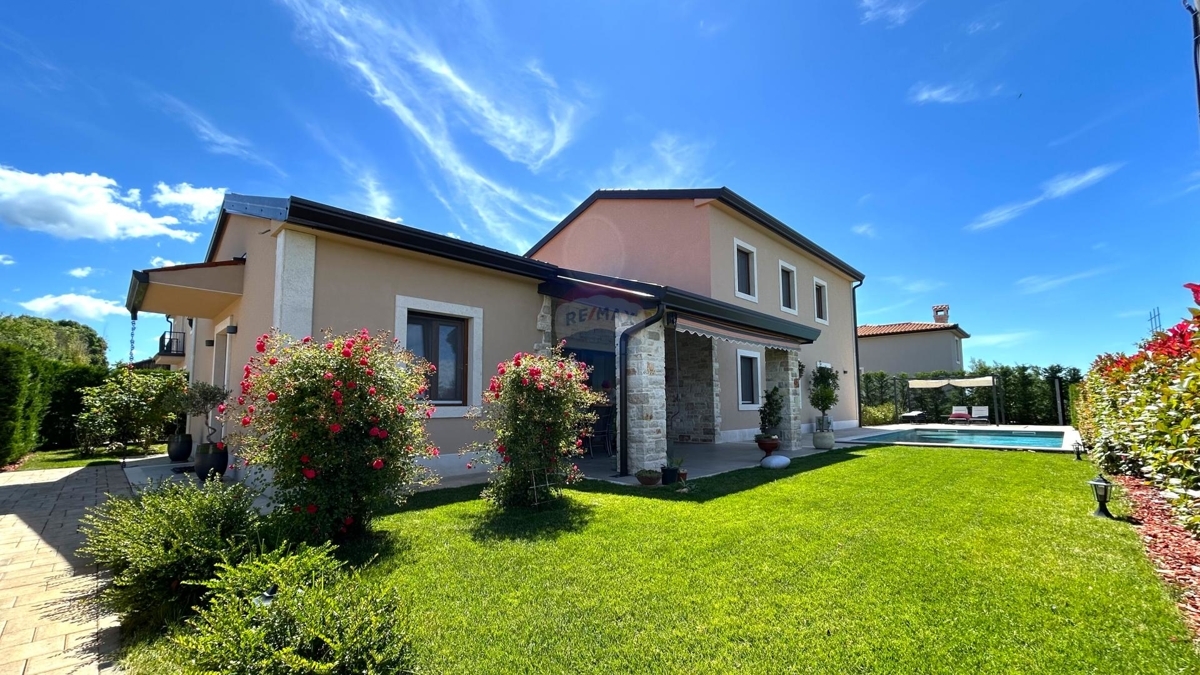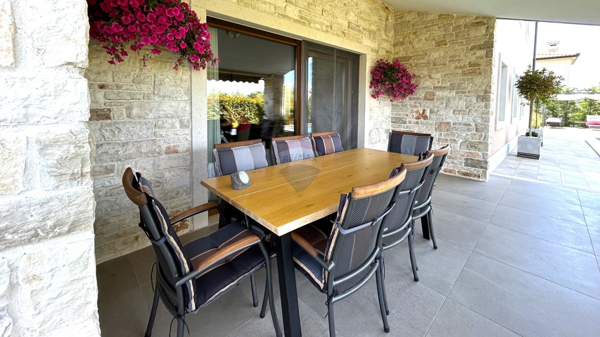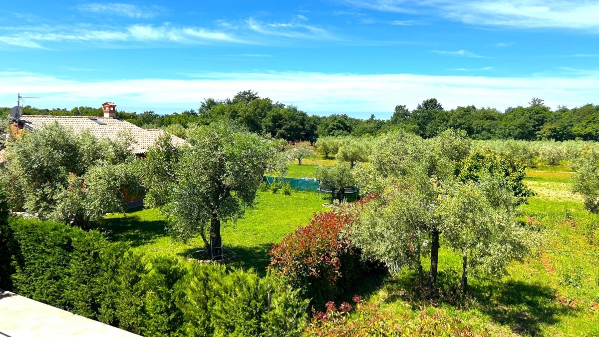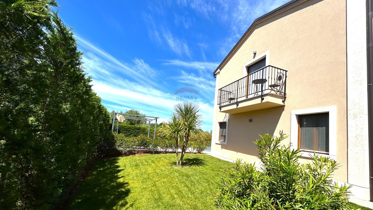In einer ruhigen, familiären Umgebung, am Ortsrand bei Novigrad liegt diese neue, charmante Villa. Das Grundstück ist mit hohen Hecke umgeben, die Ihnen Privatsphäre bietet, dazu grenzt der vordere Außenbereich an den benachbarten Gartenbereich und Olivenfeldern.Im Erdgeschoss dominiert das große Wohnzimmer mit Küche und Essbereich, das mit der überdachten Terrasse verbunden ist. Daneben befinden sich zwei Schlafzimmer und ein Badezimmer. Auf dieser Etage gibt es auch eine Gäste-Toilette sowie einen Technik- und Abstellraum.