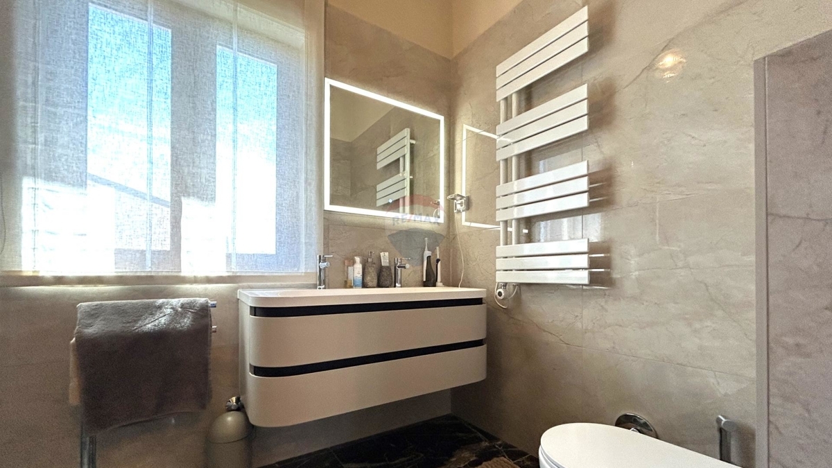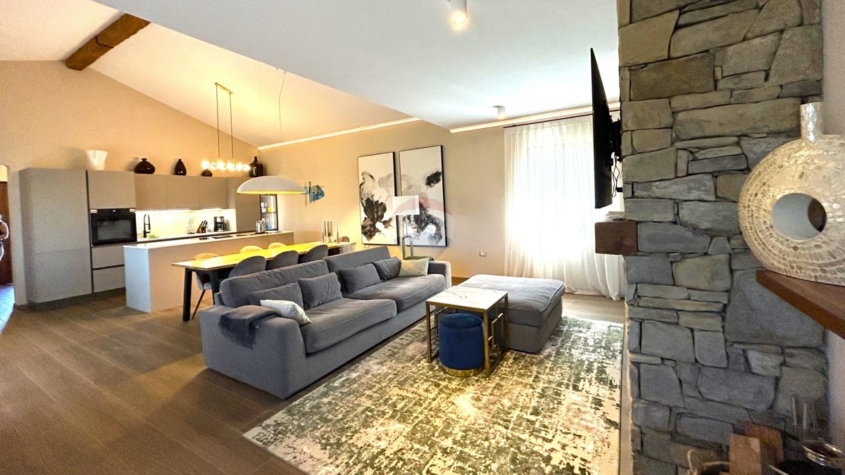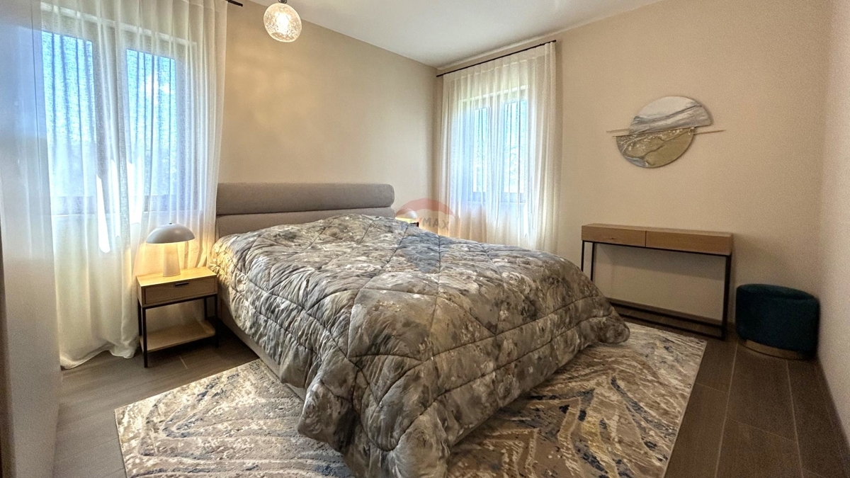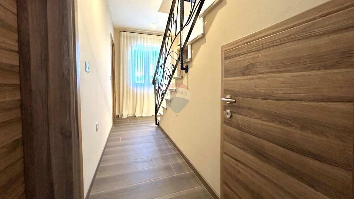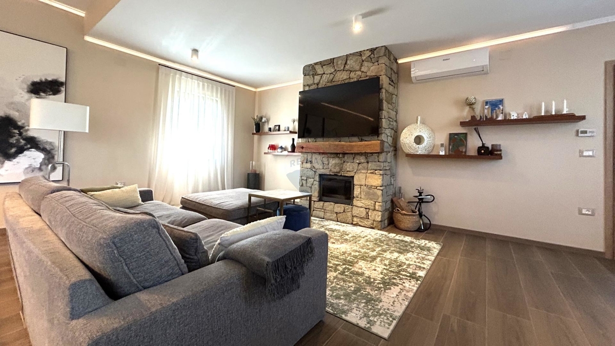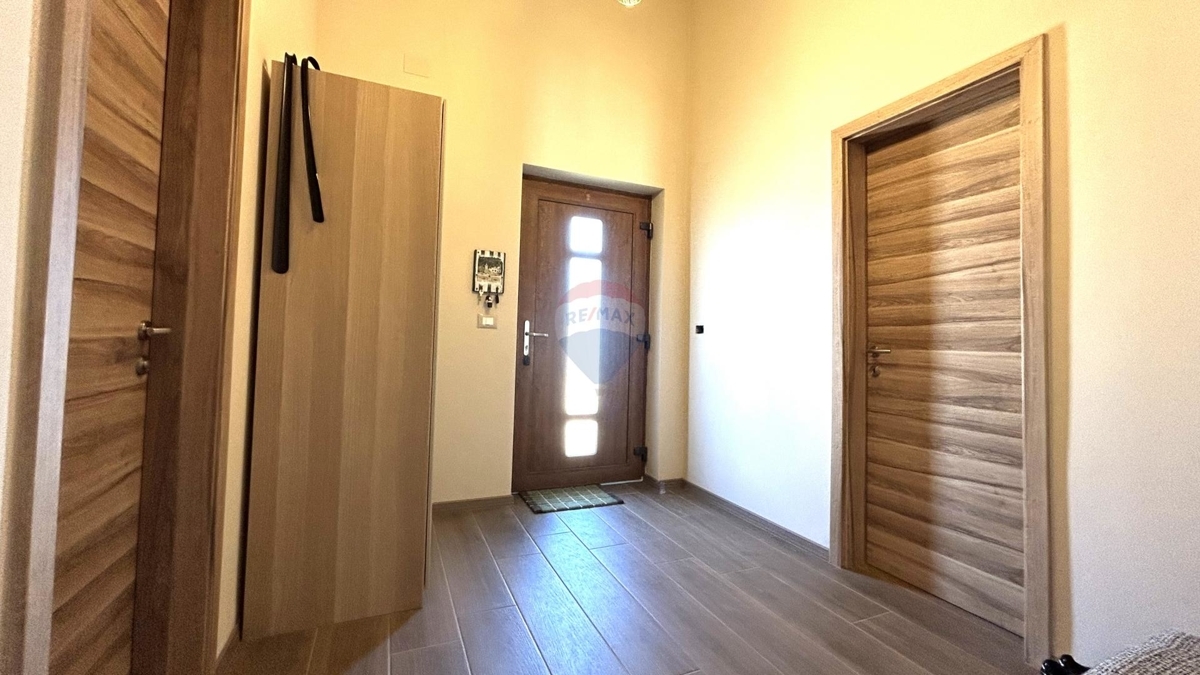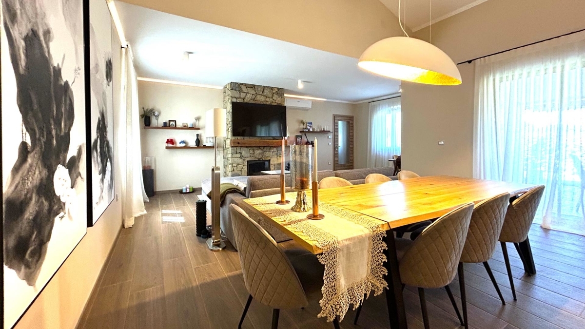 In einer ruhigen, familiären Umgebung, am Ortsrand bei Novigrad liegt diese neue, charmante Villa. Das Grundstück ist mit hohen Hecke umgeben, die Ihnen Privatsphäre bietet, dazu grenzt der vordere Außenbereich an den benachbarten Gartenbereich und Olivenfeldern.Im Erdgeschoss dominiert das große Wohnzimmer mit Küche und Essbereich, das mit der überdachten Terrasse verbunden ist. Daneben befinden sich zwei Schlafzimmer und ein Badezimmer. Auf dieser Etage gibt es auch eine Gäste-Toilette sowie einen Technik- und Abstellraum.