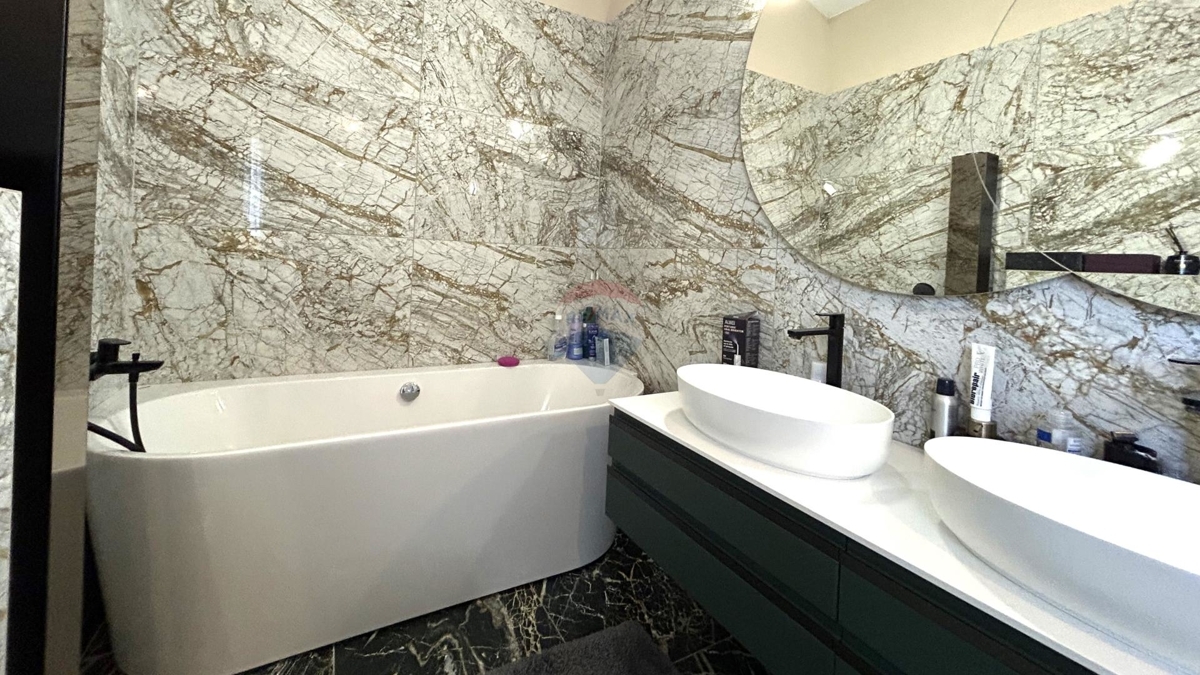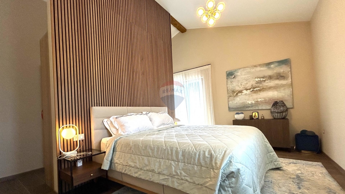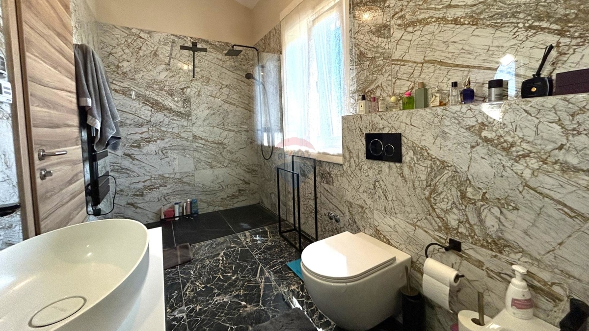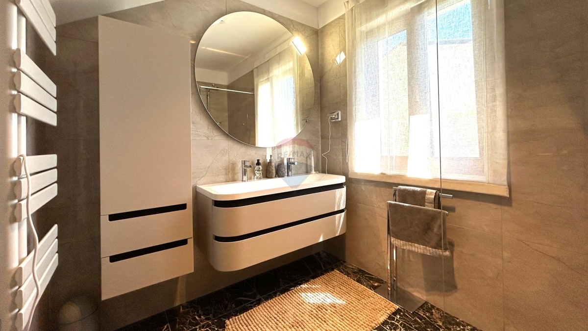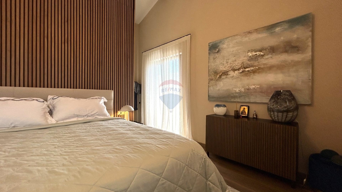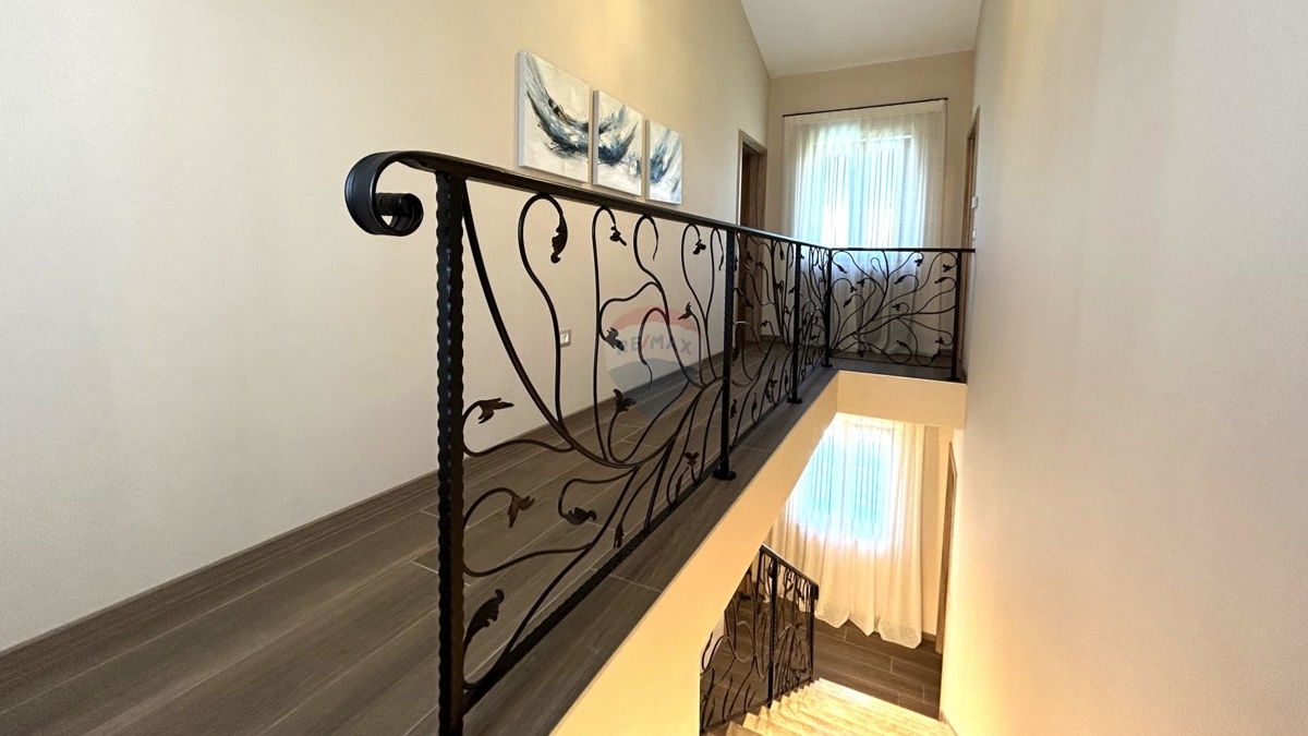 Im Obergeschoss gibt es zwei weitere Schlafzimmer, jedes mit einem eigenen Bad. Ein Schlafzimmer davon hat auch eine Ankleide sowie einen Balkon mit Meerblick.