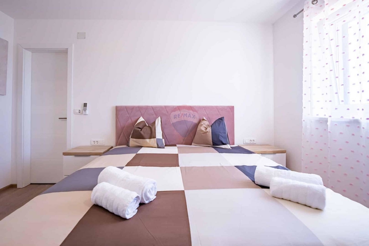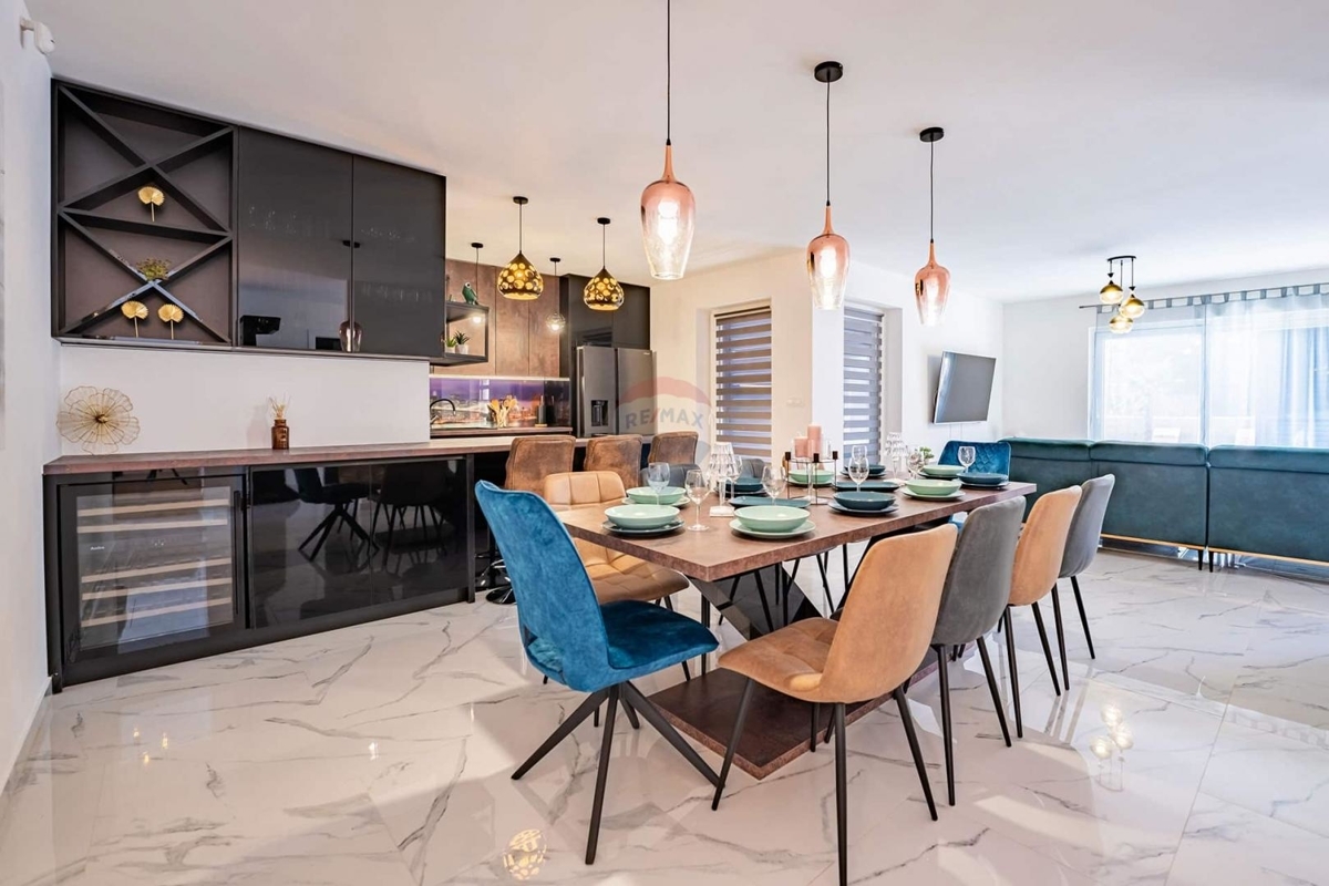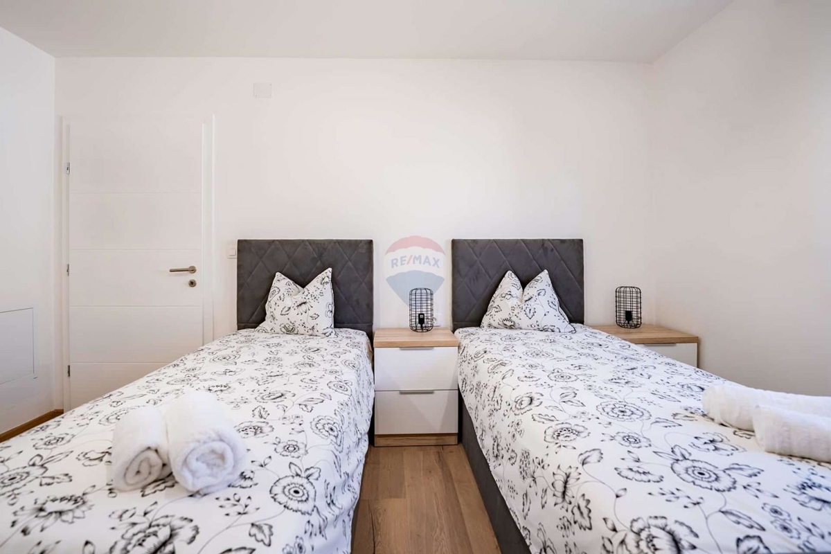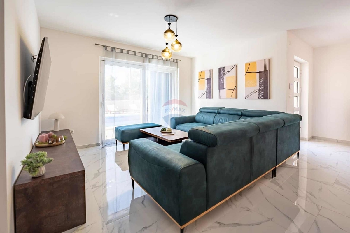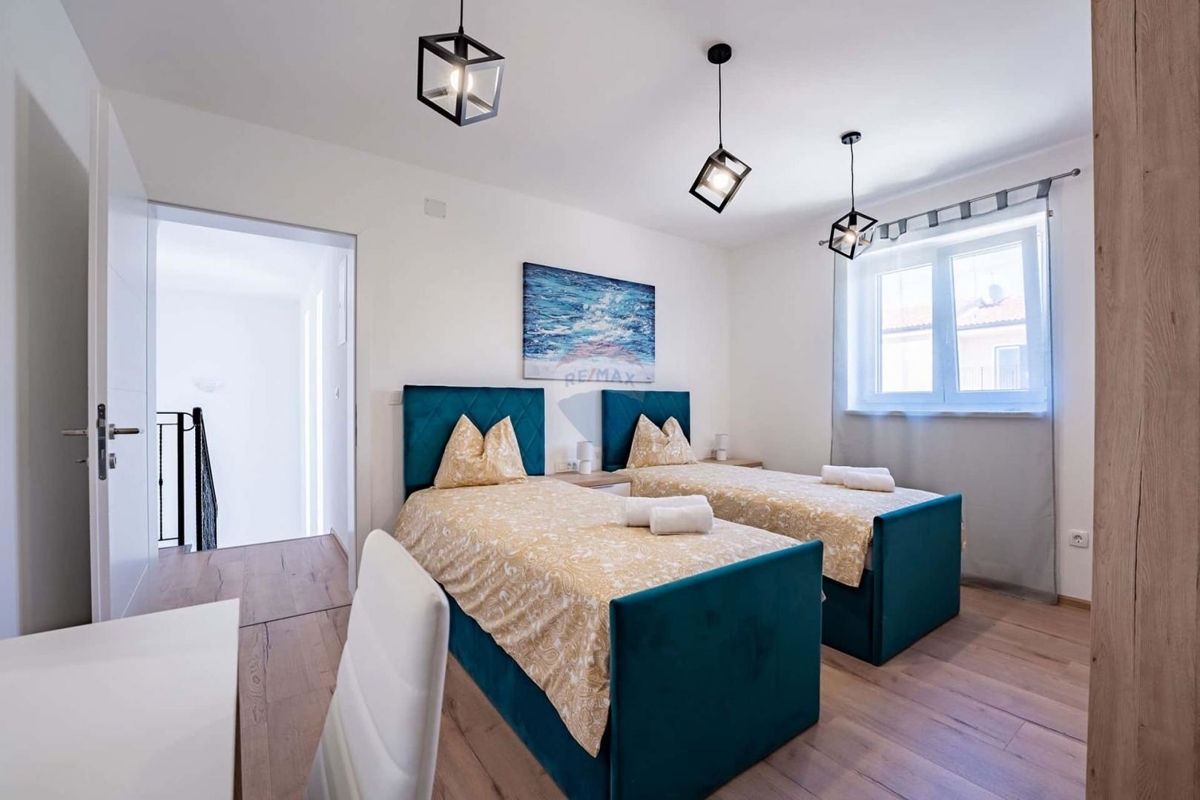 Idyllisch gelegen bietet dieser Neubau Ihnen absolute Ruhe und Privatsphäre auf der wunderschönen Insel Krk. Die Fertigstellung des Hauses ist für Juni 2023 vorgesehen.Das Erdgeschoss wird mit einem Schlafzimmer mit eigenem Badezimmer, einer Gardarobe, einem Gäste-WC, einem offenem Wohn-Ess-Bereich mit Küche ausgestattet.
