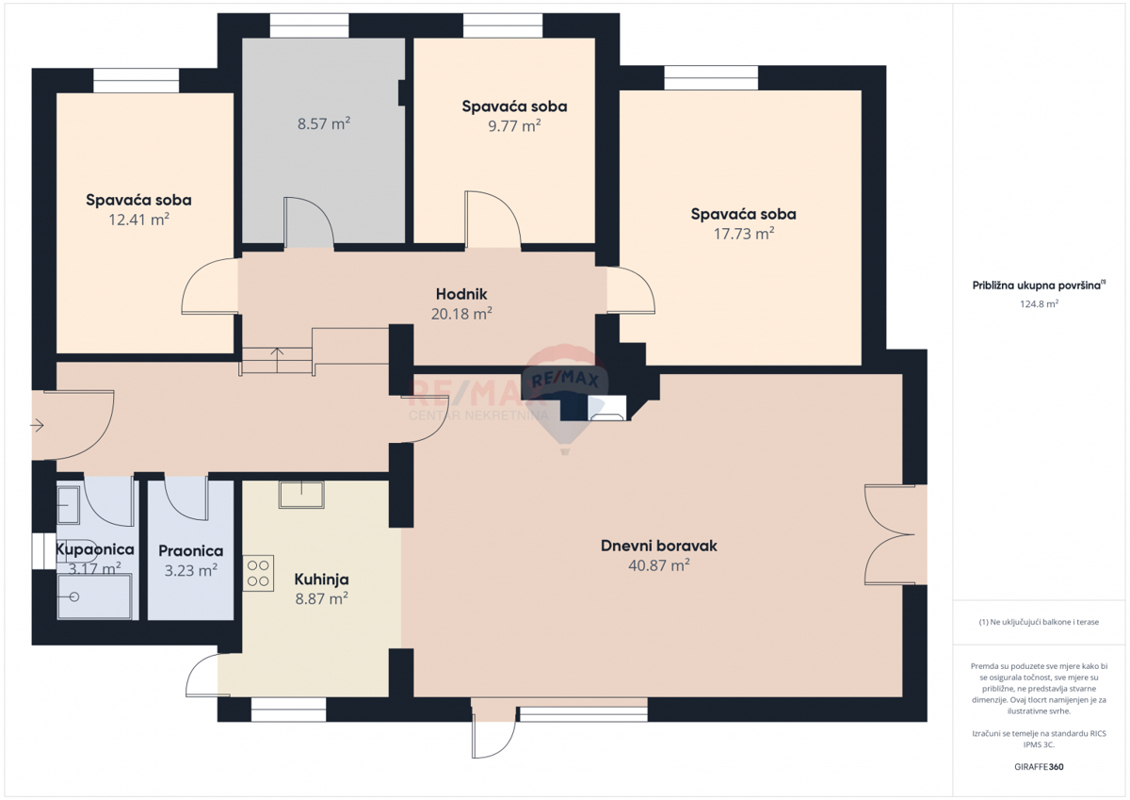 Im geräumig aufgeteilten Haus dominiert der helle Wohn- und Essbereich, verbunden mit der Küche. Von hier aus haben Sie Zugang zu den beiden überdachten Bereichen der großen Terrasse in L-Form - jede überdachter Bereich hat eine andere Orientierung – nach Süd-Osten und Süd-Westen. In der anderen Hälfte des Hauses befinden sich drei Schlafzimmer, ein Hauswirtschaftsraum und zwei Bäder (davon wird eines aktuell als Abstellbereich benutzt).
