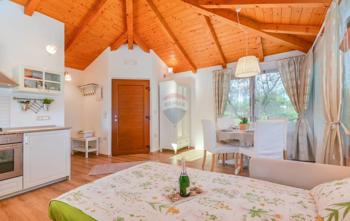 Ortsrand von Galižana bei Vodnjan. Im alten Ortskern sowie in Vodnjan finden Sie Einkaufsmöglichkeiten, Restaurants, Cafés sowie weitere Annehmlichkeiten. Die charmante Ortschaft Fažana, mit schönen, weitläufigen Stränden ist etwa 5 km entfernt. Das Stadtzentrum von Pula sowie der Flughafen sind nur 8 km entfernt.Ausstattung: