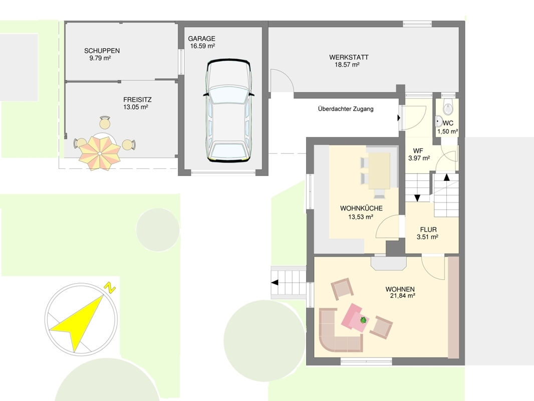 Im Erdgeschoss Küche und Wohnzimmer, die bei Bedarf auch zusammengelegt werden können.