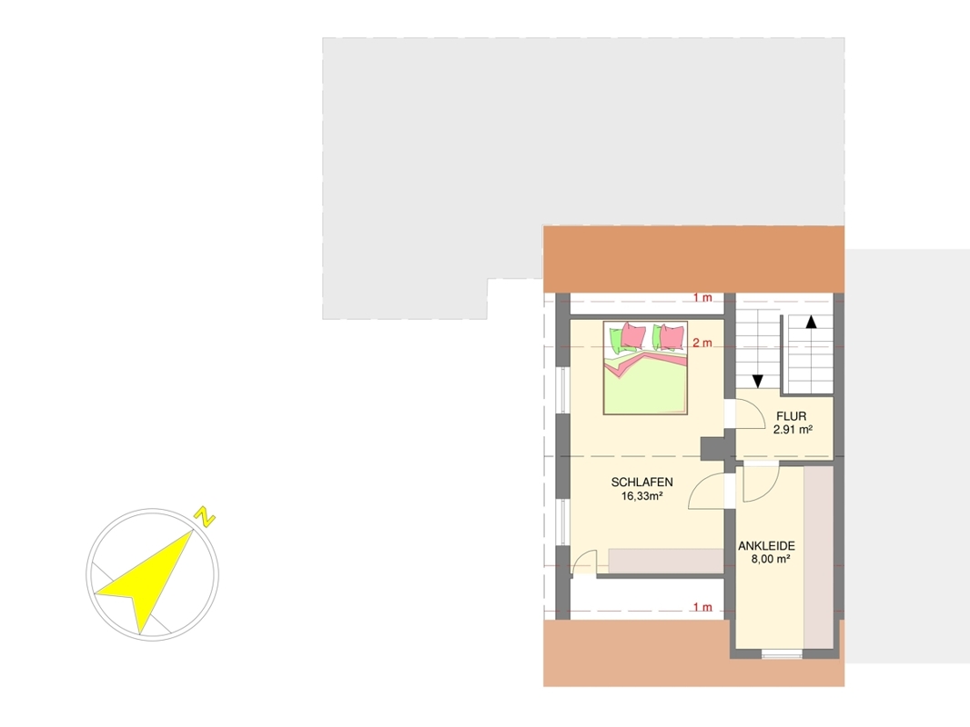 Im Dachgeschoss zwei weitere Zimmer, ideal als Gästezimmer, Arbeitszimmer oder Hobbyraum