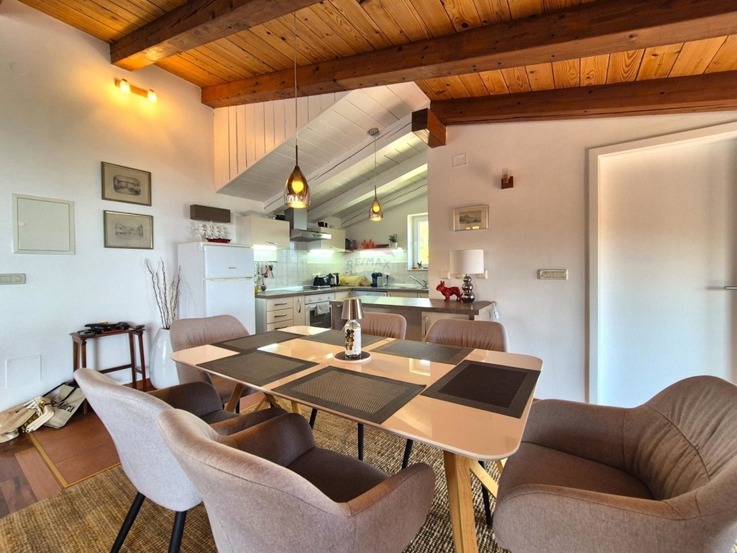 Nur 700 m vom Meer entfernt liegt diese schöne Wohnung.Im Dachgeschoss eines kleineren Gebäudes mit drei Parteien und drei Etagen. Jede Wohnung hat einen eigenen, separaten Eingang, ohne gemeinsamen Hausflur. Aufgrund der Hanglage ist der Eingang dieser Wohnung im ersten Obergeschoss.