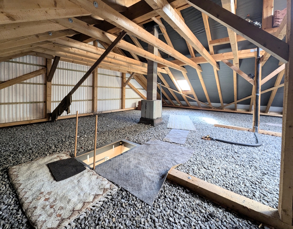 Im Galeriebereich der oberen Etage erreicht man über die Einschubtreppe den Dachboden. Dieser Bereich wurde 1999 mit einem Satteldach bebaut, sodass hier ein unglaublich großer, zusätzlicher Raum an Nutzfläche entstanden ist. Hier schlummert enormes Ausbaupotenzial, da sich dieser Bereich etwa als Wintergarten optimal ausbauen ließe. Aber was rede ich da? Ihr habt sicherlich eure eigenen Träume...