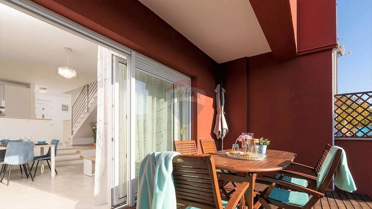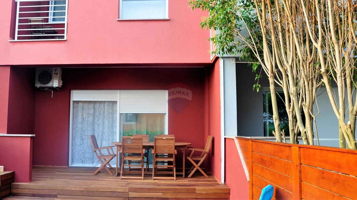 In einer attraktiven Lage, etwa 2 km vom Strand entfernt liegt dieses interessante Reihenhaus. Die Umgebung ist idyllisch ruhig und zugleich in Nähe aller Annehmlichkeiten.Im Erdgeschoss befindet sich das Wohn- und Esszimmer mit einer Küche sowie eine separate Toilette. Vom Wohnzimmer aus gelangen Sie auf die überdachte Terrasse.