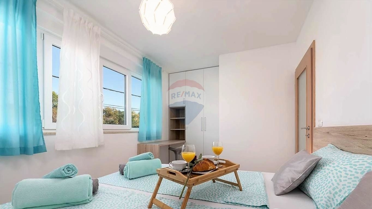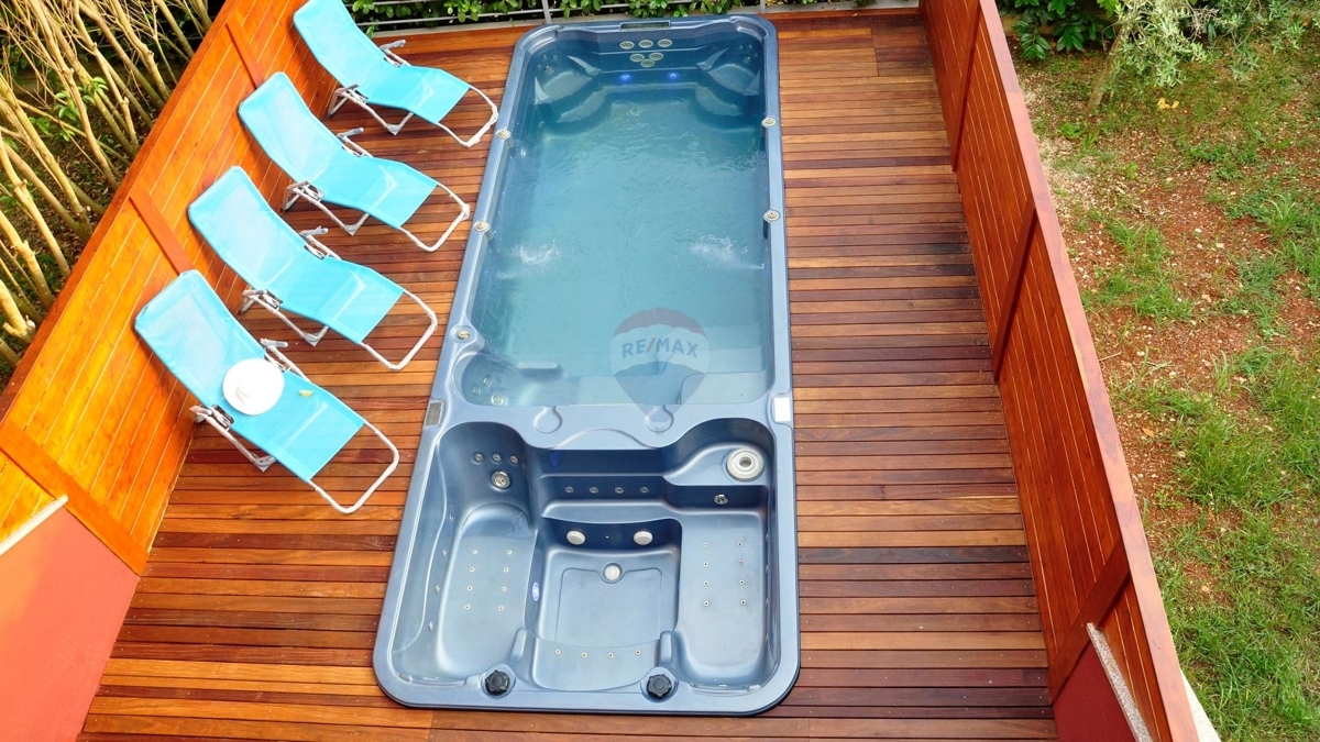 Umag, ruhige Siedlung am Stadtrand. Im Radius von 1 km finden Sie verschiedene Restaurants, Lebensmittelladen, Cafés, Strände. Der Golfclub sowie Tennisplätze in Umag sind etwa 7 km entfernt und auch gut mit Fahrrad zu erreichen.Ausstattung: