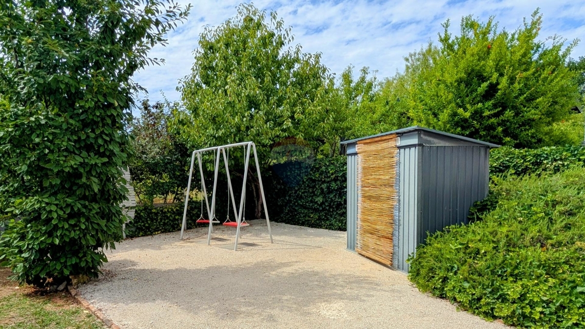 In einer herrlichen Randlage der Rovinjs Umgebung liegt dieses charmante Haus. Während die quirlige Altstadt nur 10 km entfernt liegt, genießen Sie hier die Ruhe der Landidylle.Im Haus dominiert der offene und helle Wohnbereich mit Esszimmer und Küche. Drei Schlafzimmer, jedes mit eigenem Bad stehen zur Verfügung. Darüber hinaus gibt es einen Eingangsflur, eine Gästetoilette und einen Abstellraum.