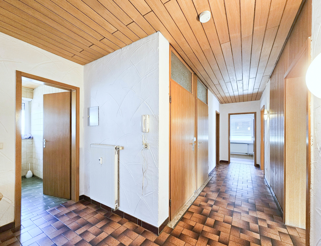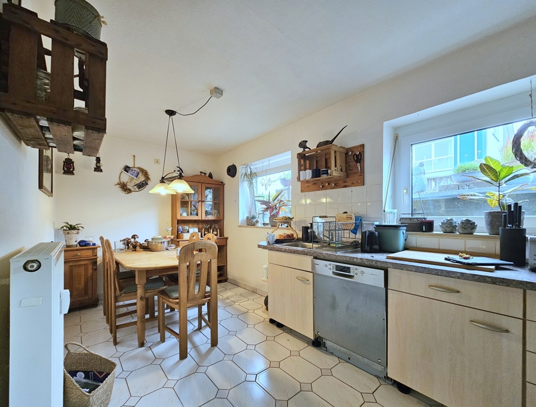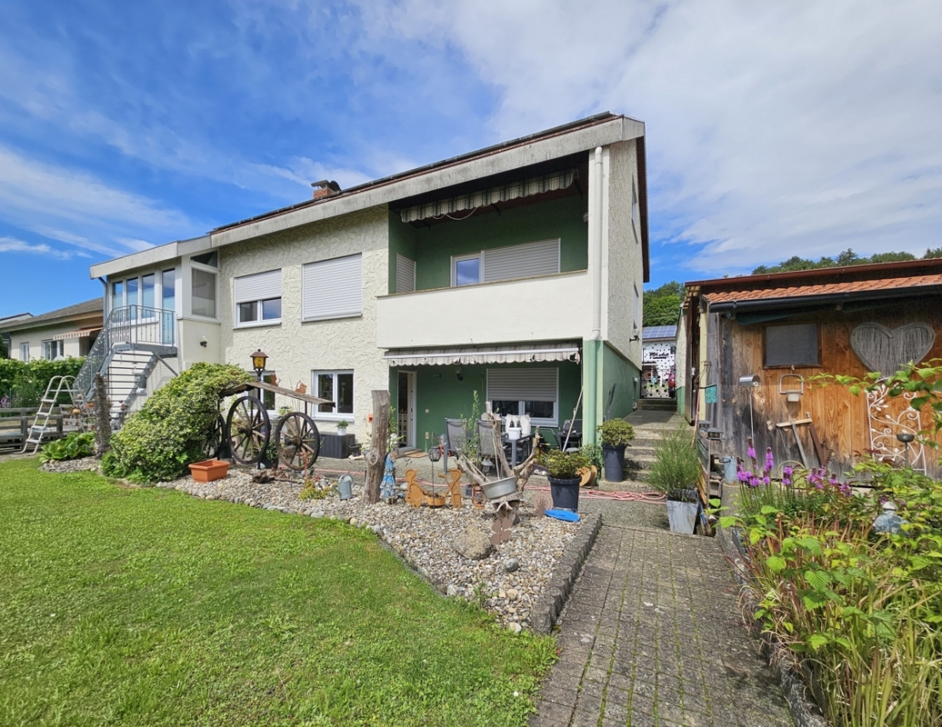Das im Jahr 1975 erbaute und 1980 erweiterte Haus befindet sich in einem sehr gepflegten Zustand durch kontinuierliche Modernisierungen. Dank der soliden Dämmung – 5 cm Styropor an allen Decken im Unter- und Erdgeschoss sowie 5 cm Styropor plus 19 cm Glaswolle im Dach – überzeugt das Gebäude auch in energetischer Hinsicht. Zwei der drei Wohneinheiten, im Gartengeschoss und im Dachgeschoss, sind aktuell vermietet und sorgen für zusätzliche Mieteinnahmen. Die Hauptwohnung im Erdgeschoss ist aktuell frei beziehbar und überzeugt mit großzügigem Wohnkomfort. Der 1998 zu einem Wintergarten ausgebaute Freisitz schafft ein lichtdurchflutetes Wohngefühl und bietet über eine Außentreppe direkten Zugang in den liebevoll angelegten Garten. Dieser lädt mit gepflegten Rasenflächen, schattigen Plätzchen und viel Raum zum Spielen, Entspannen und Genießen ein.