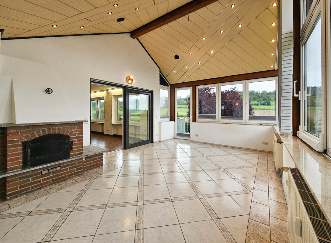 Eine Doppelgarage, mehrere PKW Stellplätze, kurze Wege in die Natur und der freie Blick über Felder und Wiesen machen diese Immobilie zu einem Wohnjuwel, das man nur selten findet.