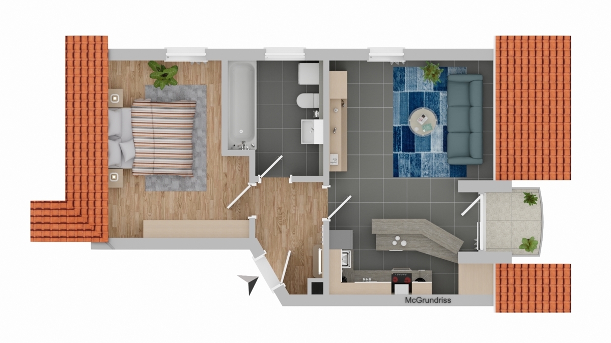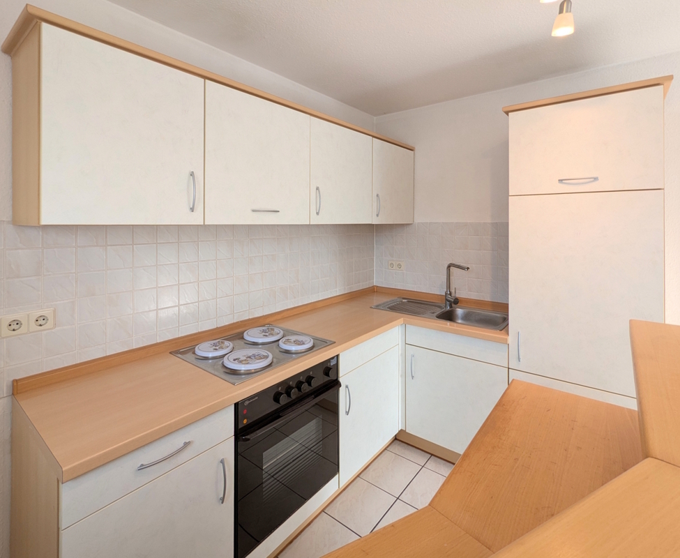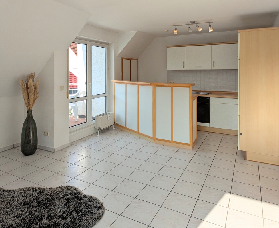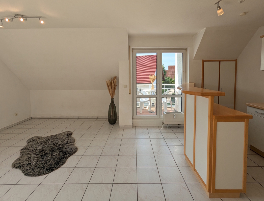 Die freundliche 2-Zimmer-Wohnung bietet attraktives Wohnen auf 44 m² Wohnfläche verteilt auf 2 Zimmer, wobei der offene Grundriss für ein helles und einladendes Ambiente sorgt. Gut isolierte, zweifachverglaste Fenster verteilen im Wohn- und Schlafbereich eine freundliche Atmosphäre, während der kleine Balkon in Südausrichtung einen Rückzugsort mit Blick auf die angrenzenden Einfamilienhäuser bietet.