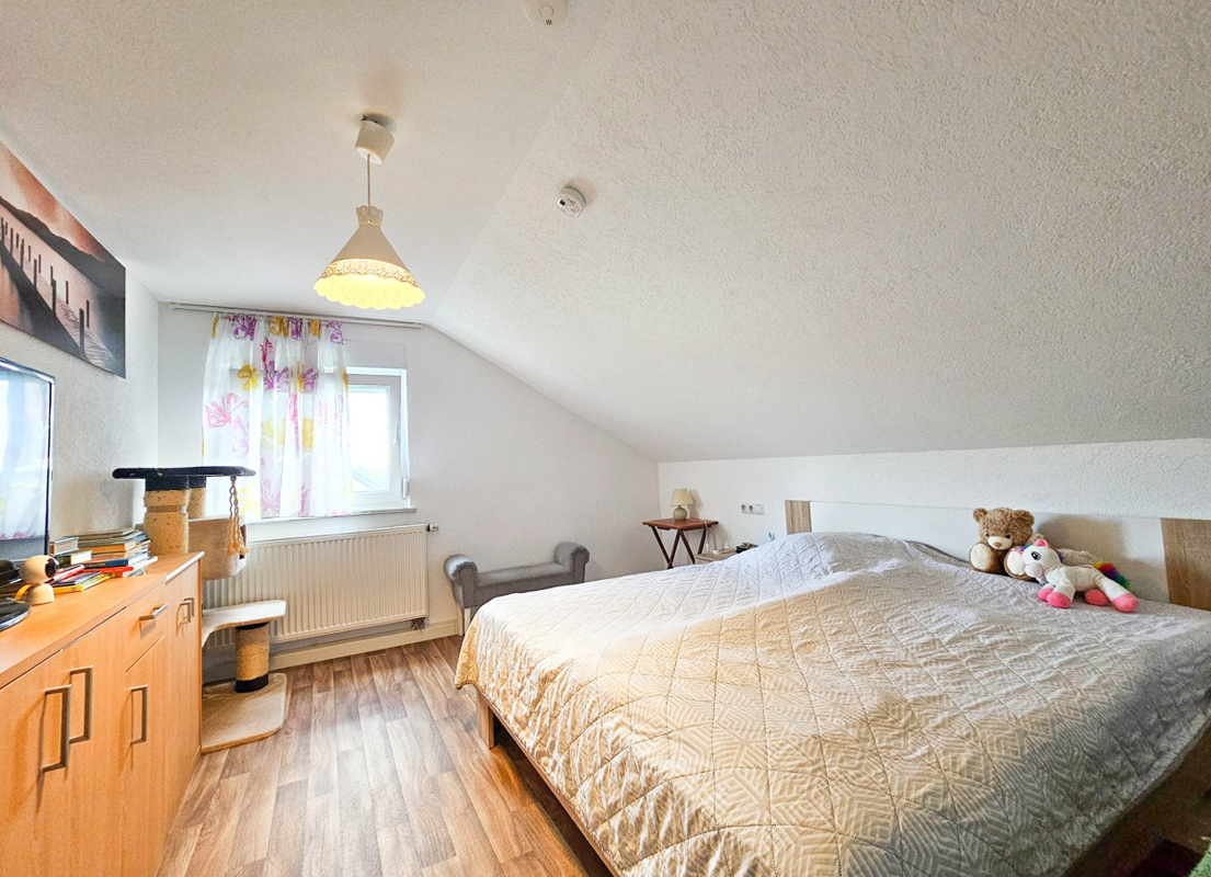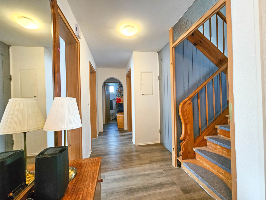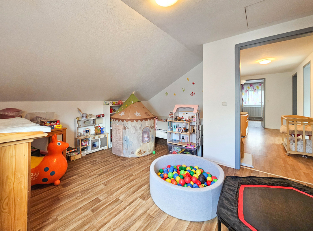 Im Erdgeschoss erwarten Sie ein Windfang, ein Flur, drei Zimmer, eine Küche, ein neu gestaltetes Bad sowie ein Gäste-WC mit Vorraum. Das ausgebaute Dachgeschoss bietet vier weitere Zimmer, eine Toilette mit Waschtisch sowie die Anschlüsse für ein weiteres Badezimmer. Dank der ruhigen Lage, der großzügigen Raumaufteilung und der hochwertigen Modernisierungen präsentiert sich dieses Haus als ideales Zuhause für Familien, Paare oder Menschen, die viel Platz für Wohnen und Arbeiten unter einem Dach schätzen.