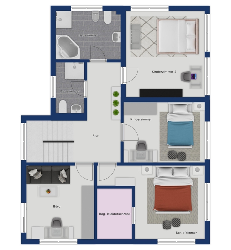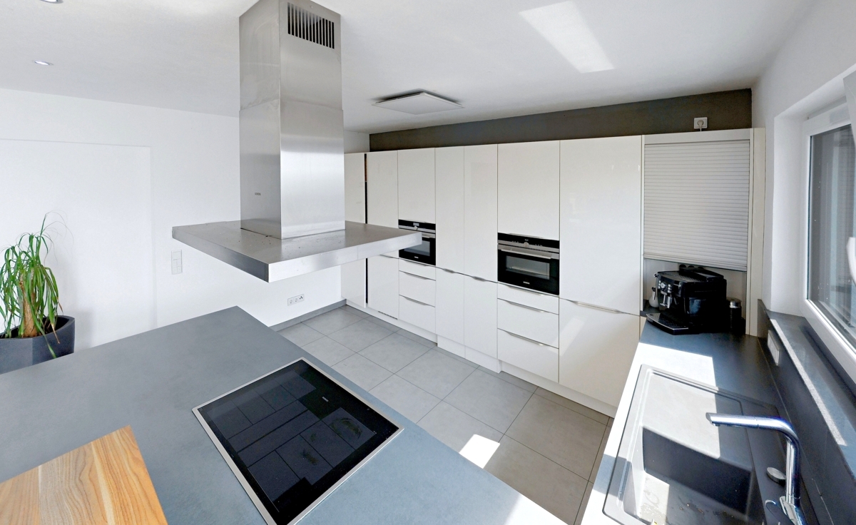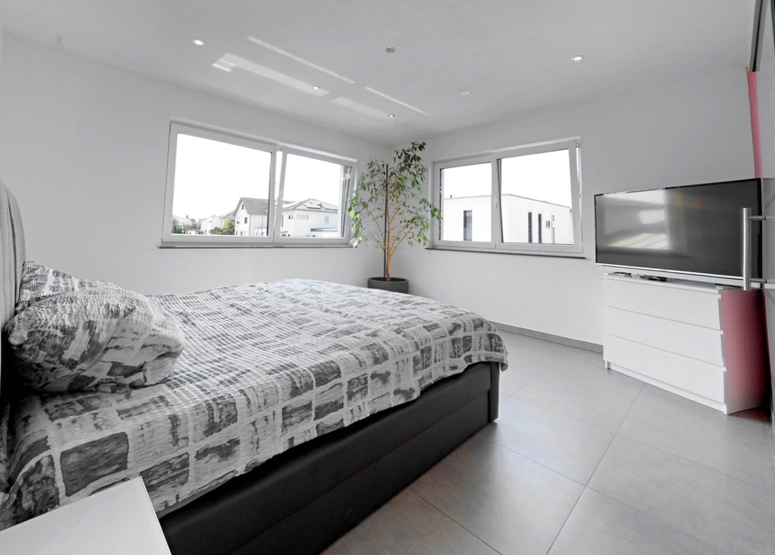Flachdach, massive Bauweise• 3 moderne Bäder + Gäste-WC, bodentiefe Duschen, Eckbadewanne