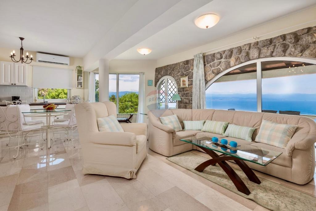 Direkt oberhalb von Lovran liegt diese schöne Wohnung und bietet Ihnen einen unverbaubaren offenen Panoramaausblick auf das Meer und die ganze Bucht von Kvarner.