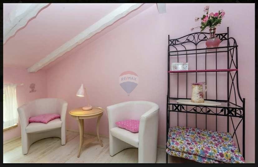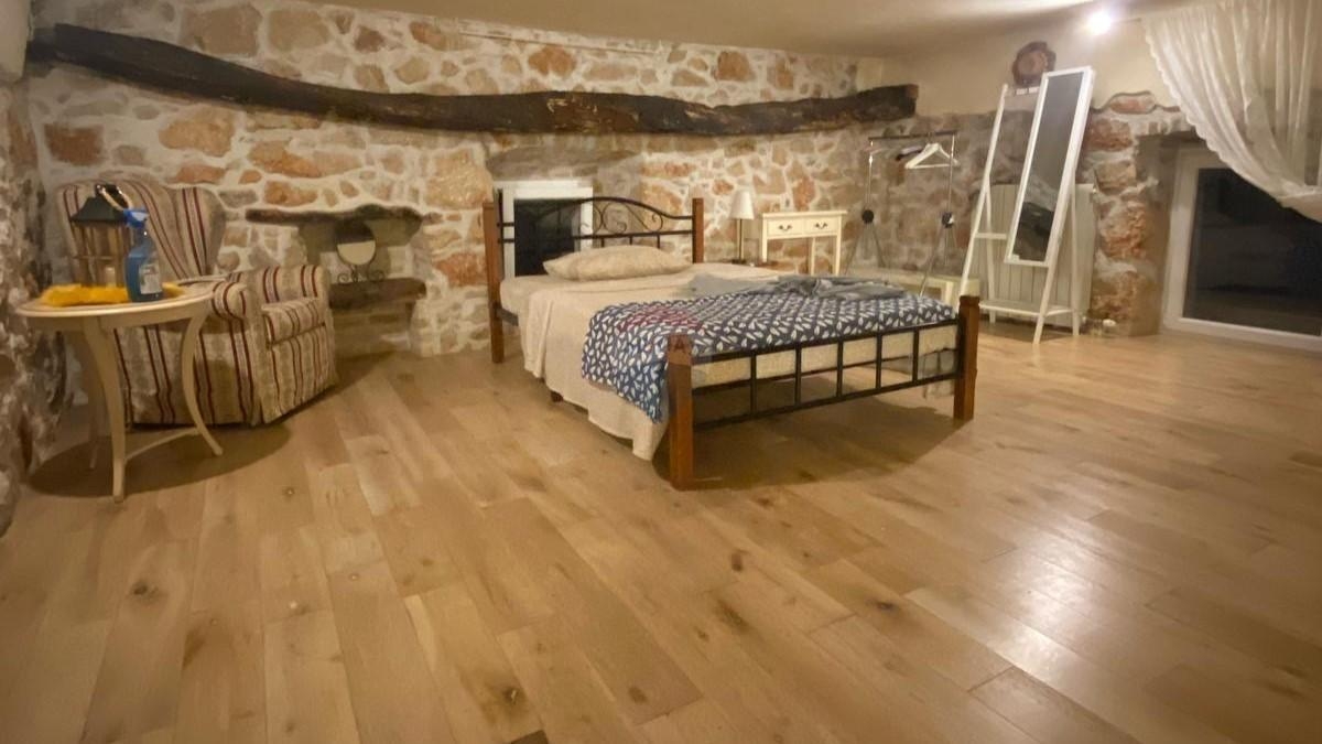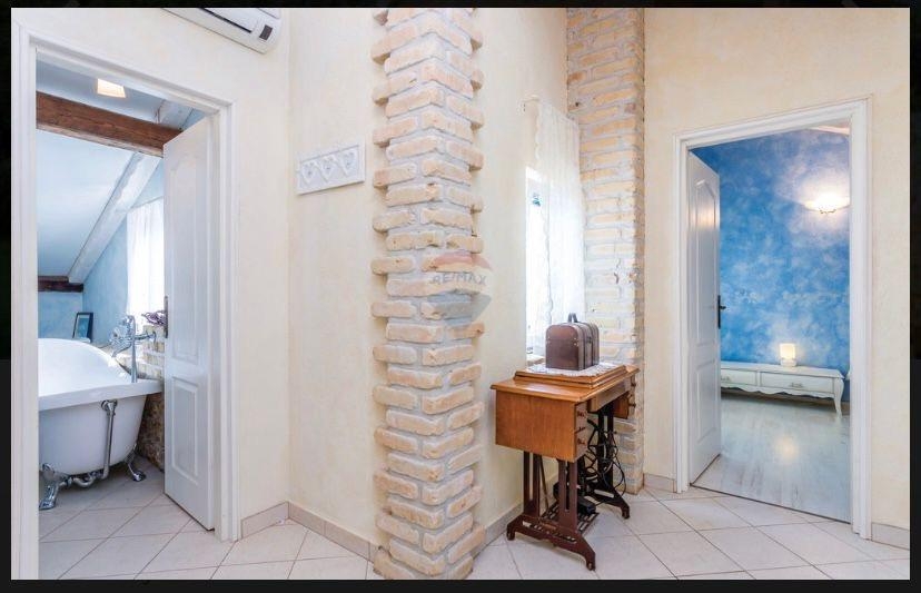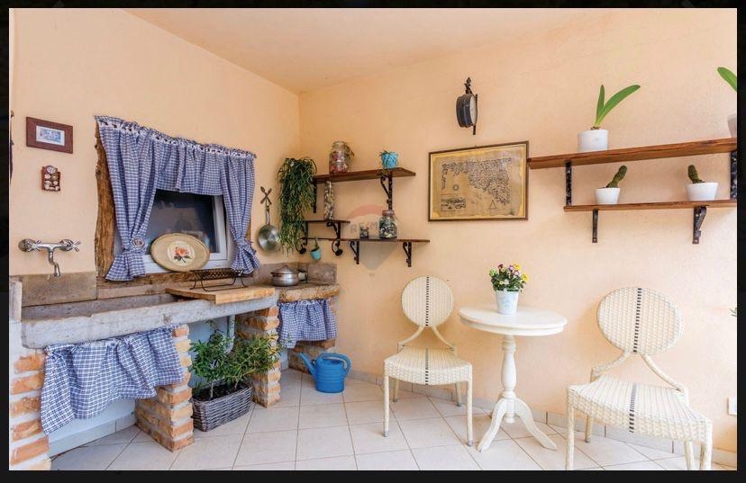 Im Erdgeschoss befindet sich eine „Konoba“ – eine urige, traditionelle „Stube“ mit Steinmühle, eine separate Toilette, Technikraum und eine überdachte Außenküche.