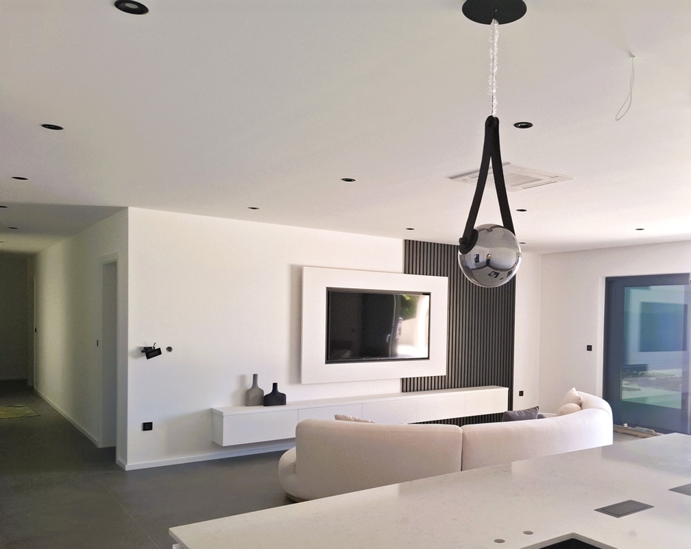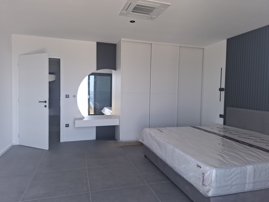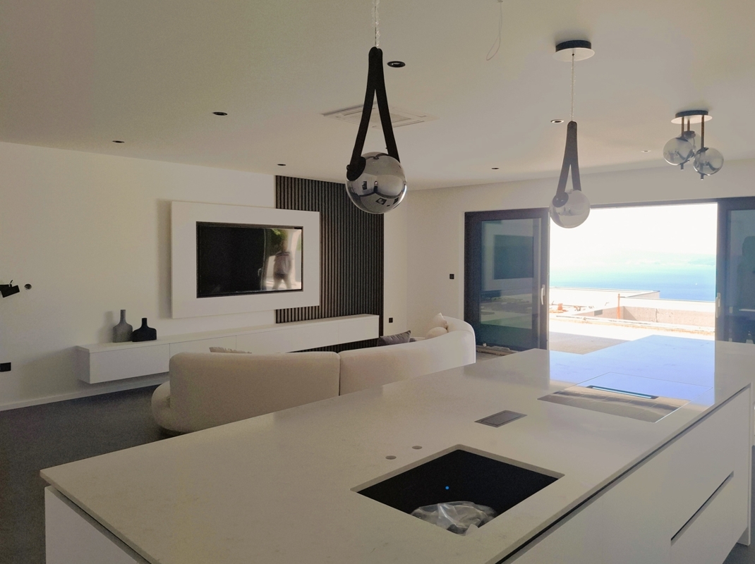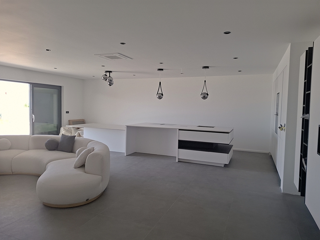Ruhig gelegen am Ortsrand und oberhalb vom Meer liegt diese fantastische neue Villa. Die erhöhte Lage bietet einen unverbaubaren Blick auf das Meer und die Küstenlandschaft.Auf einer Ebene sind die großen, hellen Wohnräume verteilt. Das Open Space Wohnzimmer mit einer großen Kochinsel ist direkt mit überdachter Terrasse und dem Außenbereich. Es stehen insgesamt drei Schlafzimmer mit eigenen Bädern, ein Wellnessraum mit Bad, das Wohnzimmer, ein Abstellraum und Gästetoilette. Alle Schlafzimmer haben eine Orientierung zum Süden und genießen offenen Meerblick.