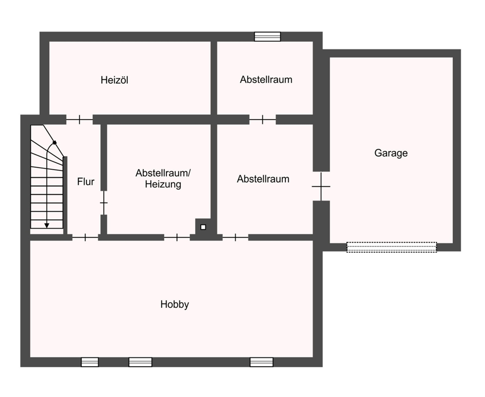 -3 Räume (Heizungsraum mit Badewanne, WC und Waschbecken, Werkstatt/ Hobby, Lager)