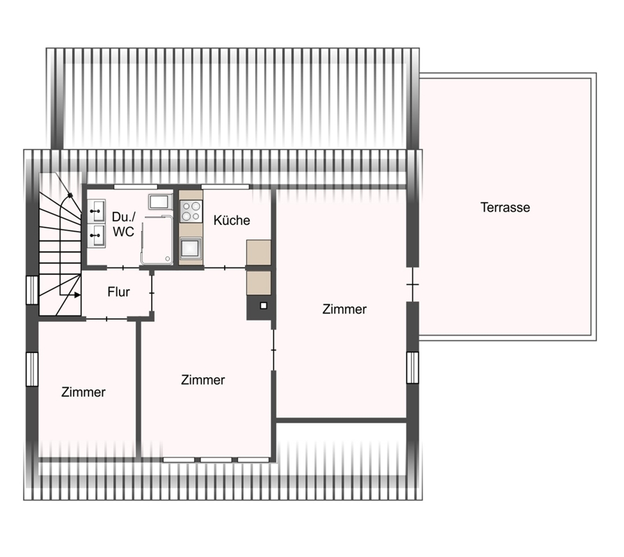Ca. 24 m² Dachterrasse (in der Wohnfläche zu 25 % enthalten)