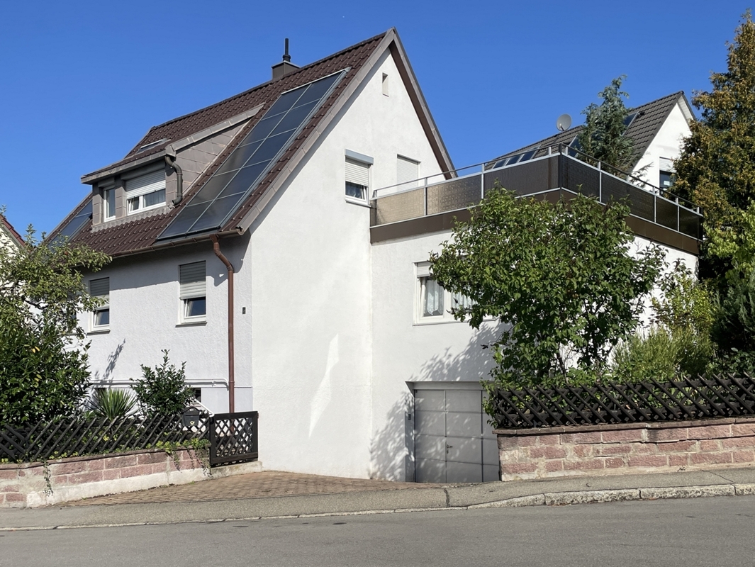 Das 1954 auf 407 m² Grund in leichter Hanglage errichte Einfamilienhaus bekam 1961 seine Garage und wurde 1971 großzügig erweitert. Über der Garage entstand das jetzige Wohnzimmer und im Norden des Hauses ein Anbau, alles in Massivbauweise. Das Haus ist komplett unterkellert. Im Obergeschoss entstand durch die Erweiterung im Erdgeschoss eine große Dachterrasse.