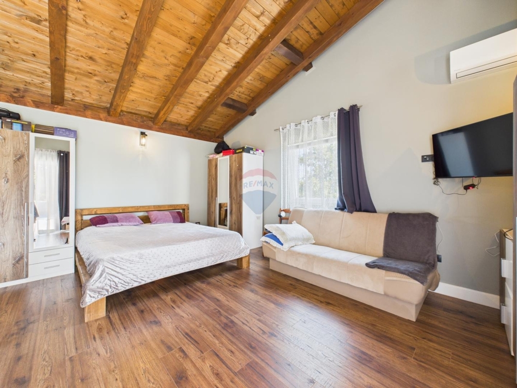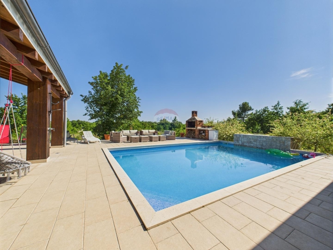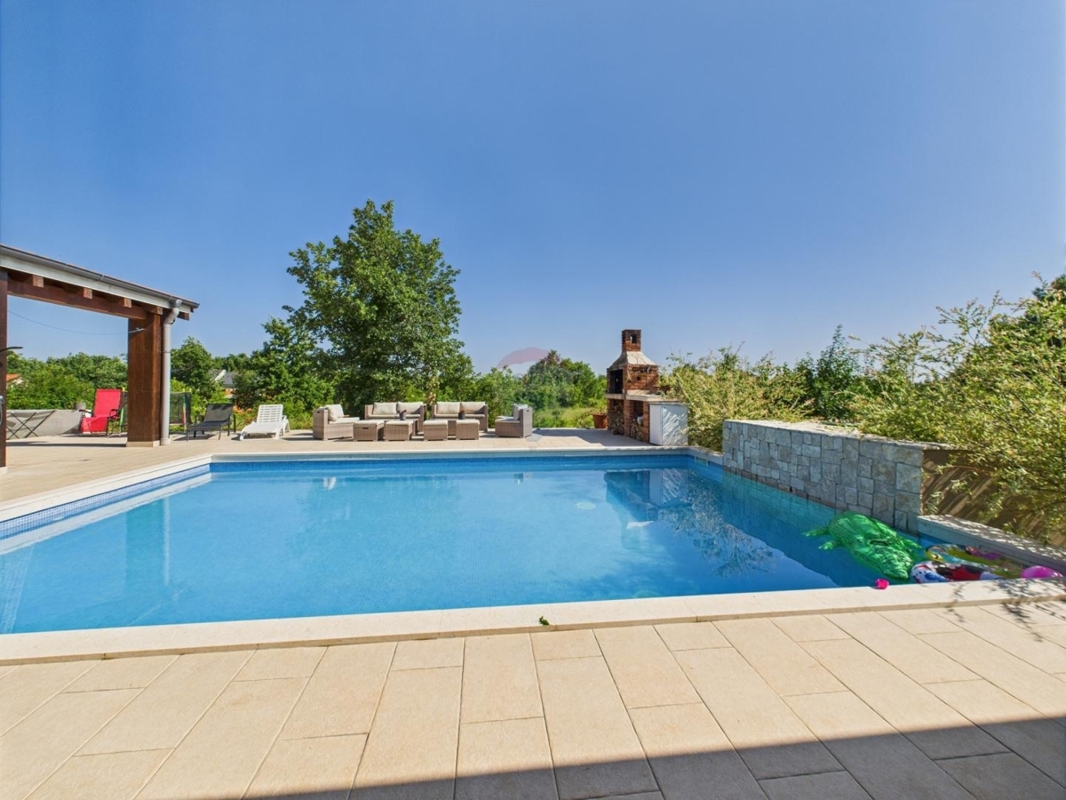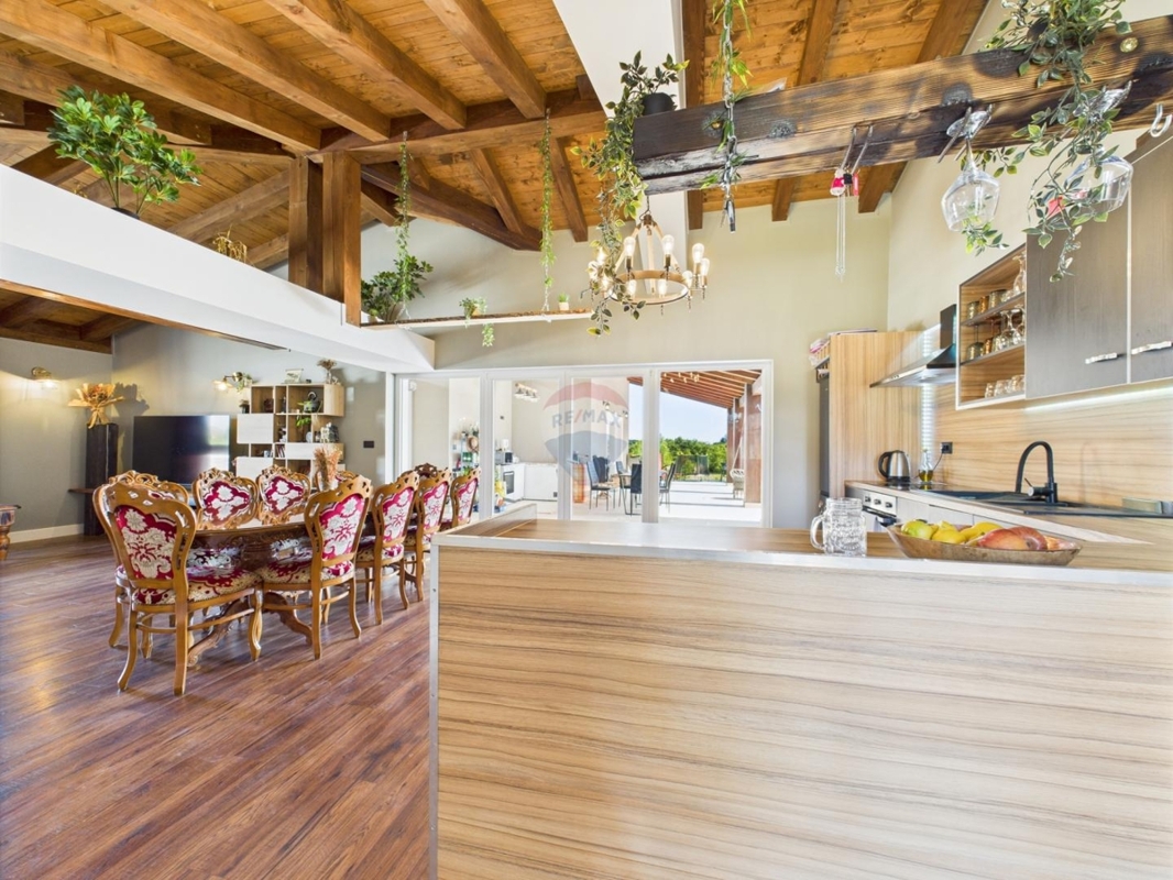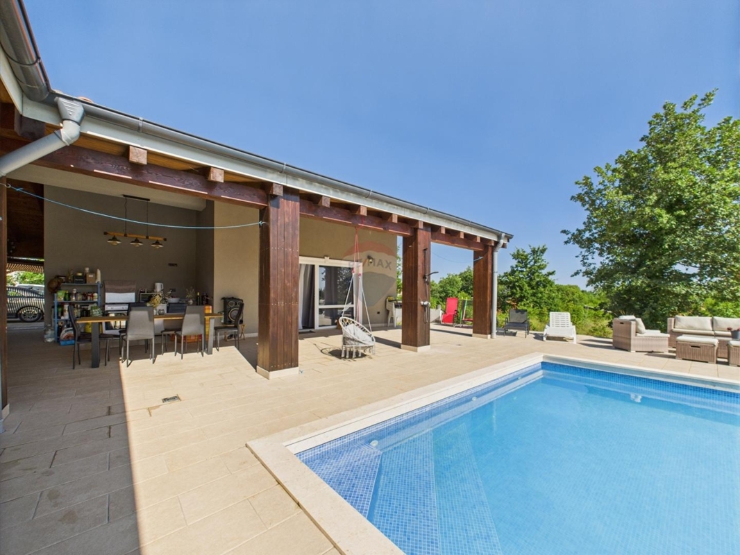 In einer idyllischen Lage, zwischen Vodnjan und Savicenta liegt dieses schöne Anwesen.Die Gesamtfläche von 258 m² ist in zwei getrennte Gebäude geteilt. Das Hauptgebäude bietet einen geräumigen, offenen Wohn- und Essbereich mit Küche, drei Schlafzimmer, jedes mit eigenem Bad, einen Abstellraum, Hauswirtschaftsraum und eine separate Toilette. In dem Nebengebäude, sind ein Studio-Apartment eingerichtet sowie ein zusätzlicher Bereich für eine Waschküche und Toilette.