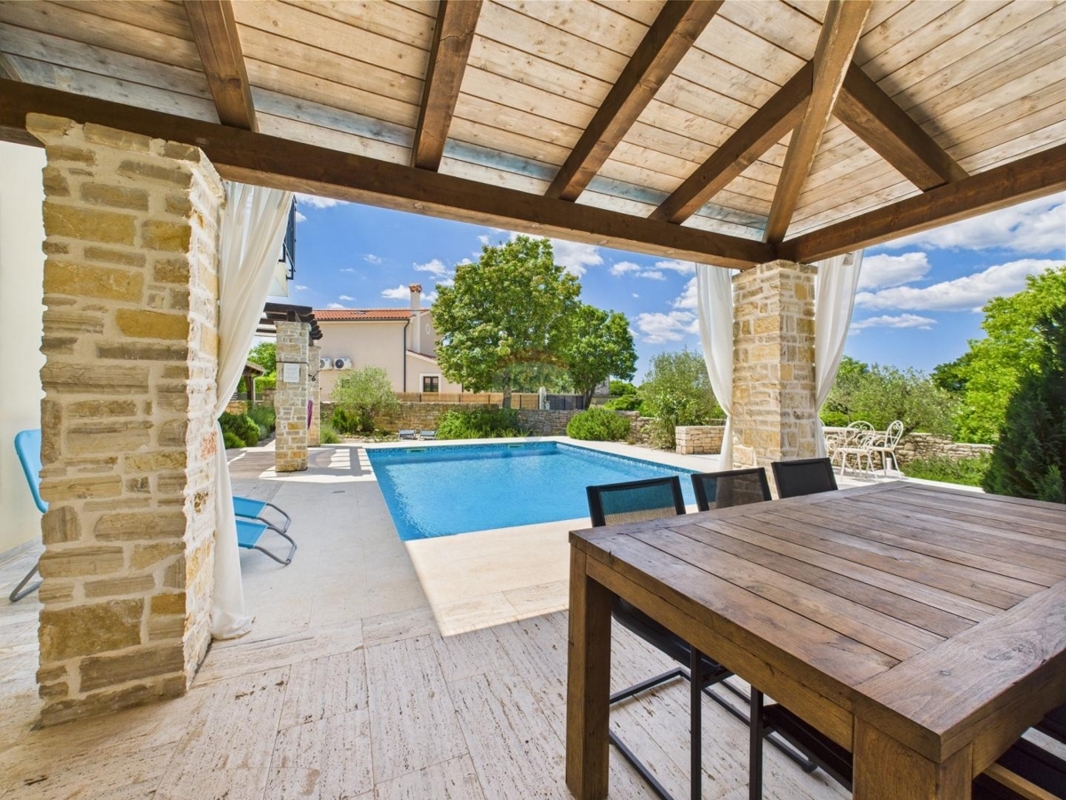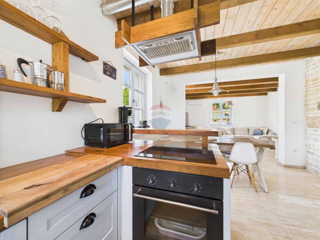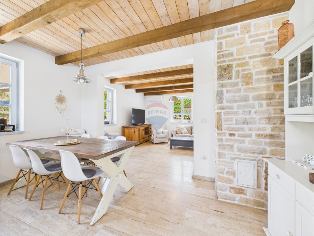 Diese attraktive Villa befindet sich in einer ländlichen Umgebung und liegt am Rand eines kleinen Ortschafts zwischen Savicenta und Vodnjan. Die Lage bietet Ihnen den Flair der Landidylle und Privatsphäre.Das Erdgeschoss besteht aus einem offenen Wohnzimmer mit Kamin, einer voll ausgestatteten Küche und einem Esszimmer, das mit dem Außenbereich verbunden ist. Darüberhinaus gibt es auf dieser Etage ein Schlafzimmer mit eigenem Bad und ein Gäste-WC.