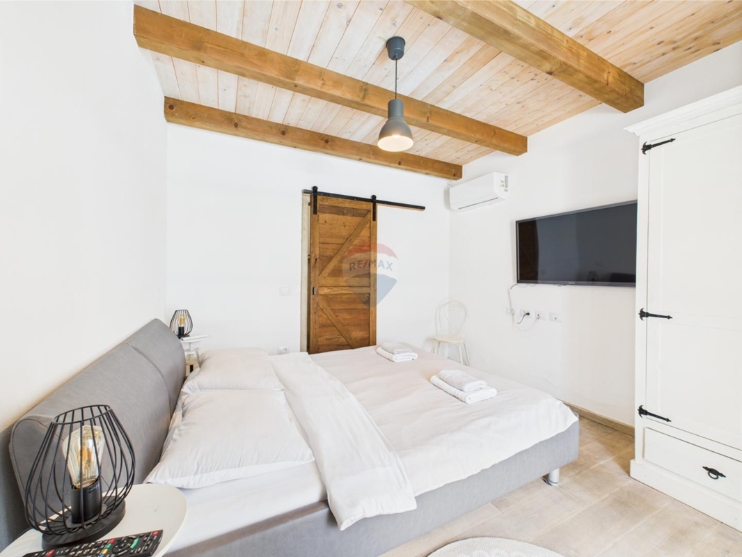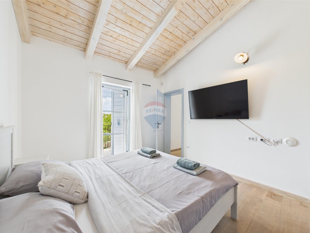 Die Entfernung zu den wunderschönen Stränden nahe dem berühmten Fischerdorf Fažana beträgt 15 Minuten, zur größten Stadt der Halbinsel, dem historischen Pula, sind es nur 20 Minuten. Die Perle der Adria, Rovinj mit ihren engen mittelalterlichen Gassen, ist in einer halben Stunde erreichbar, und die authentischen Städtchen Vodnjan und Savičenta erreichen Sie in etwa 10 Minuten.Ein Geschäft, ein Restaurant und ein Café sind fußläufig erreichbar.