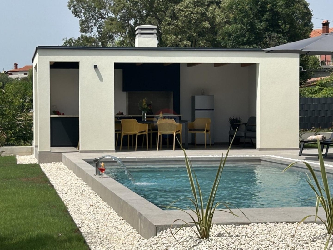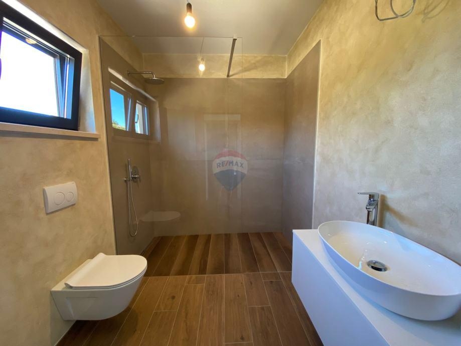 Im ruhigen Hinterland von Rovinj, zwischen Kanfanar und Savicenta liegt dieser attraktive Neubau. Die Lage am Rand der Bauzone garantiert den freien Blick auf die malerische Umgebung und Natur. Vom Obergeschoss gedeiht der Ausblick bis zum Meer hinaus.Im Erdgeschoss ist ein offener Wohnbereich verbunden mit einer Wohn-Küche, Eingangsbereich, Abstellraum, Technikraum sowie eine Geäste-WC.