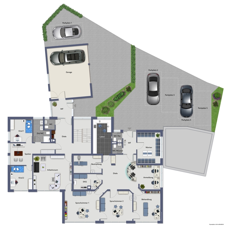 Aufteilung:Praxisräume im EG ca. 176 m² Nfl.