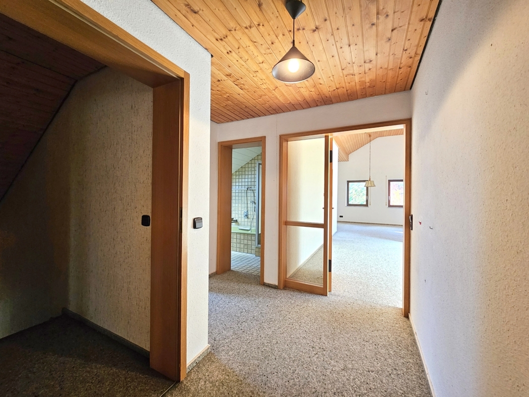 Das 1980 massiv erbaute Haus überzeugt mit einer außergewöhnlichen Raumaufteilung, hellen, großen Zimmern und vielseitigen Nutzungsmöglichkeiten. Die Substanz ist solide – zugleich wartet das Objekt auf eine zeitgemäße Modernisierung, bei der Sie Ihre eigenen Vorstellungen verwirklichen können.