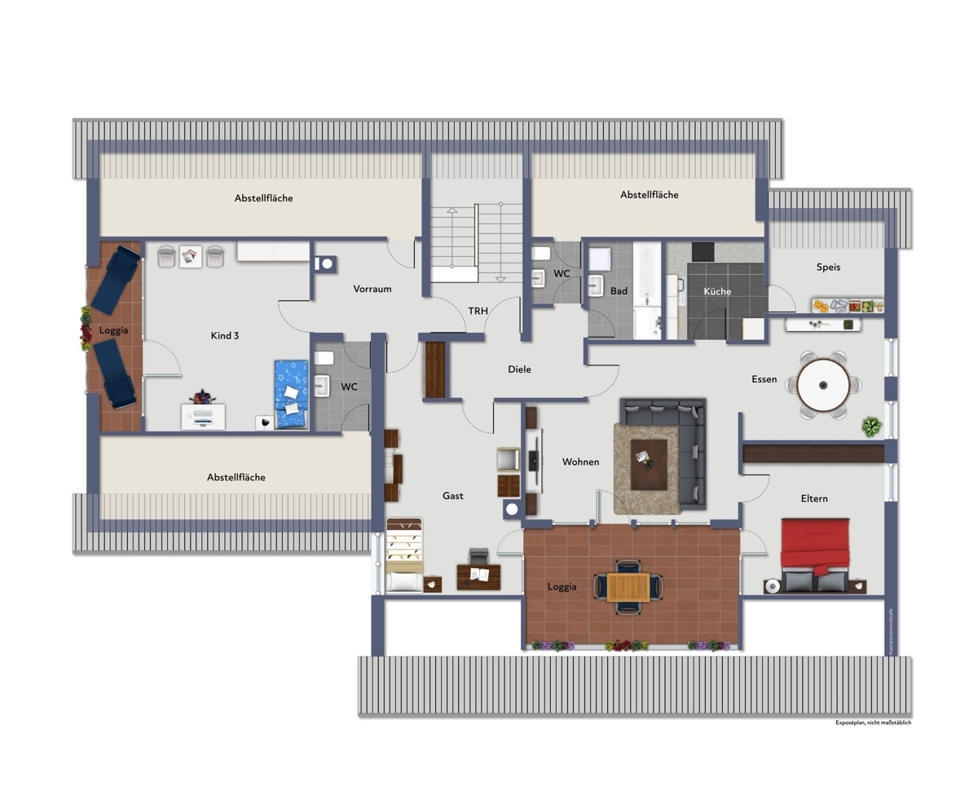 • Separate Dachgeschosswohnung mit Loggiabalkonen und viel Platz für die Familie