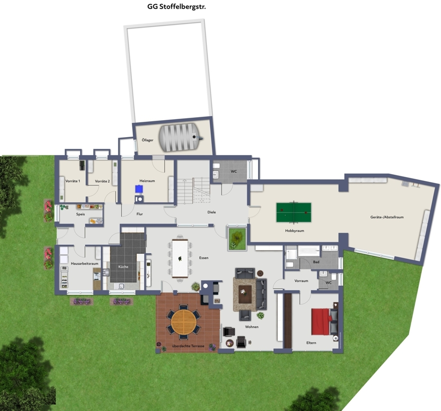 Hauptwohnung im EG/GG gesamt ca. 261 m² Wfl.