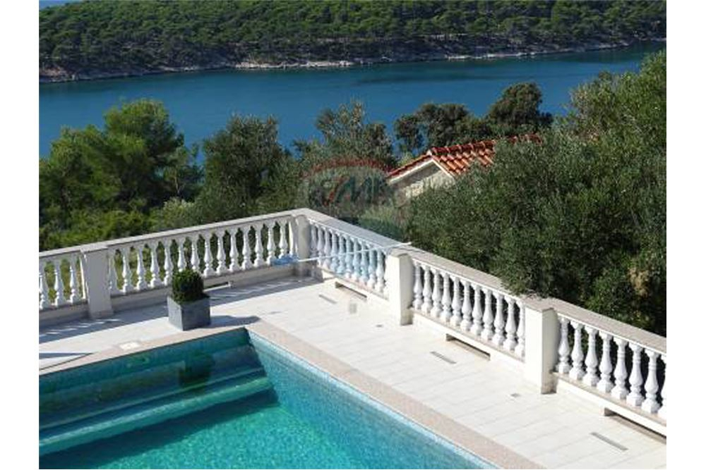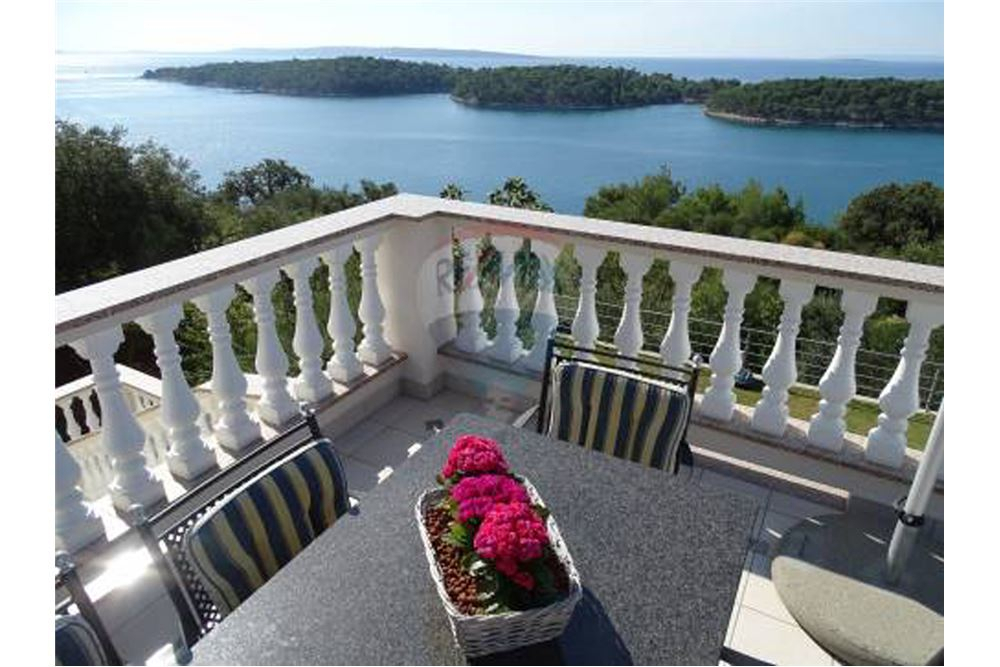 Vor dem Haus haben Sie eine herrliche große Terrasse mit Pool und einem traumhaften Blick auf die 4 Turme der Stadt Rab sowie auf das Meer, Inseln Pag und Losinj.
