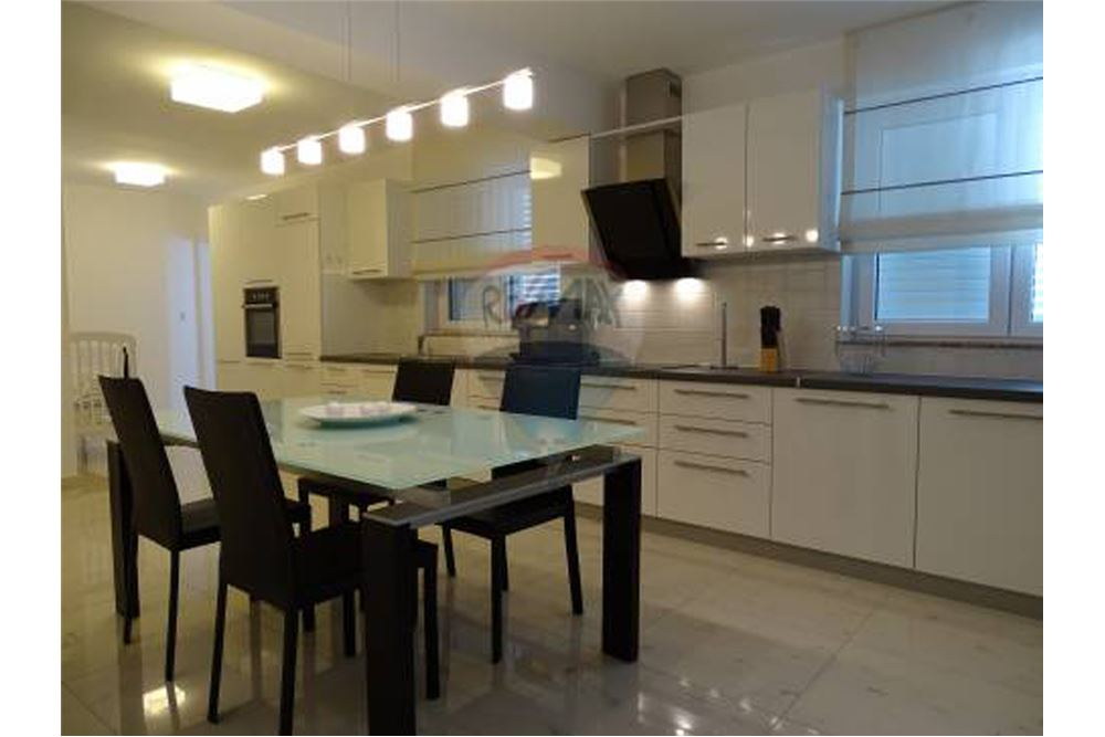 Im 1. Obergeschoss erwartet Sie ein offenes und geräumiges Wohn- und Essbereich mit Küche. Dieser schöner Raum hat über zwei Seiten große Fensterfronten, was Ihnen den Meerblick vom Sofa oder Esstisch aus ermöglicht. Daneben befinden sich noch ein Schlafzimmer mit Bad.