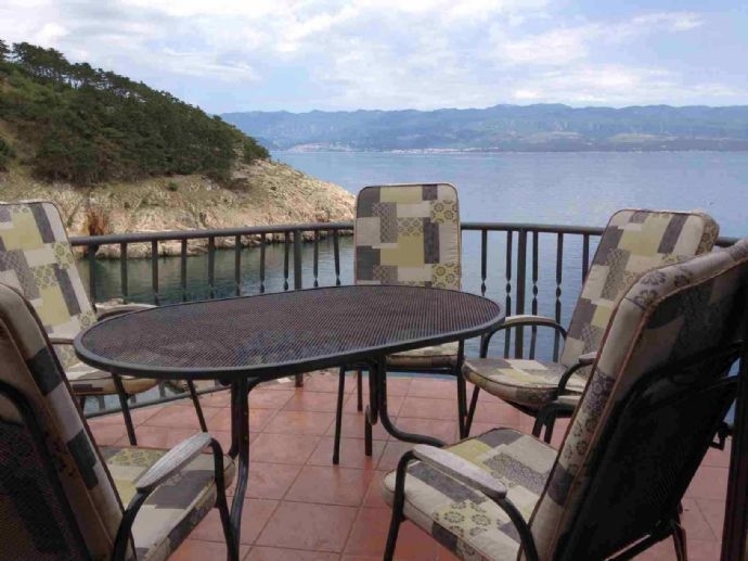 Von dem Balkon sowie der Terrasse aus haben Sie einen wundervollen Ausblick auf die gegenüberliegenden Felsen, Kvarner-Küste und das Meer.
