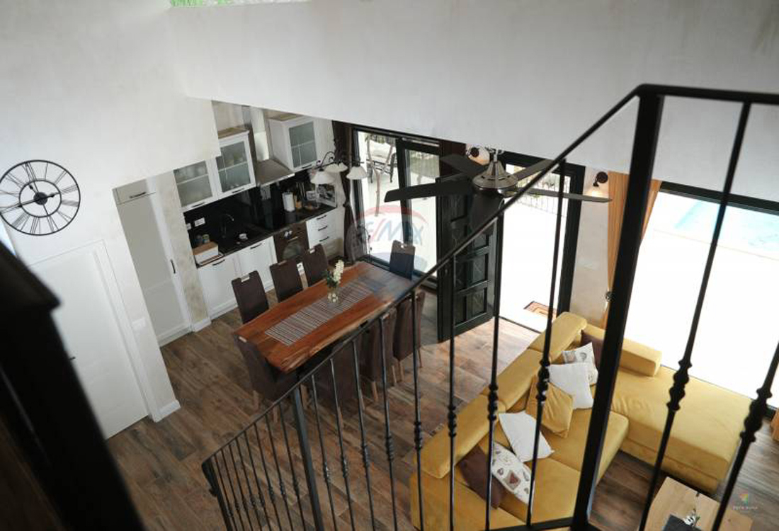 Im Erdgeschoss haben Sie Open Space Küche und Wohnbereich sowie ein Schlafzimmer mit Bad und separate Toilette.