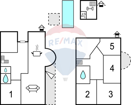 Im Obergeschoss befinden sich vier Schlafzimmer, ein Badezimmer, zwei Hauswirtschaftsräume und ein Ausgang auf den Balkon.