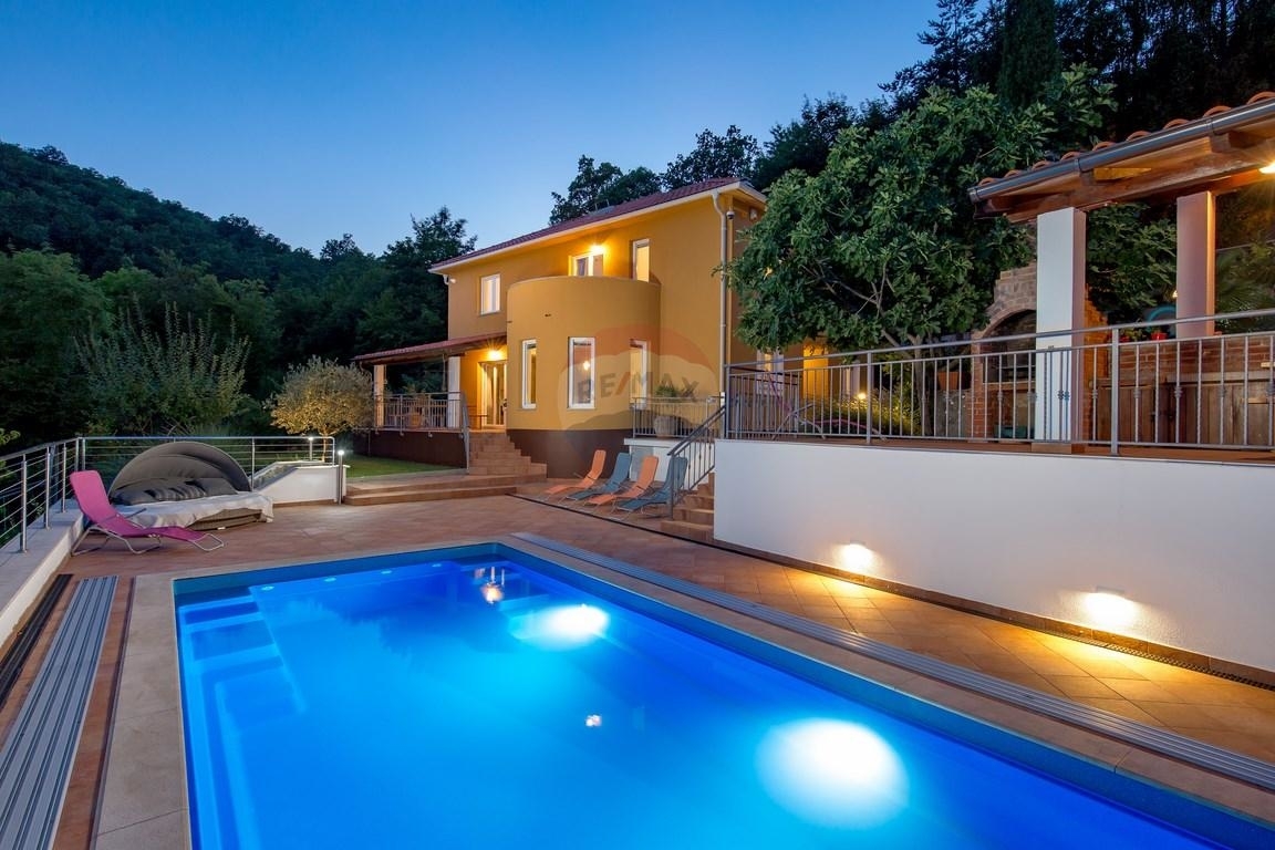 Dieses schöne Anwesen befindet sich zwischen dem Nationalpark Ucka und dem Zentrum von Opatija und bietet absolute Privatsphäre umgeben von wäldlicher Idylle.Im Erdgeschoss dominiert ein heller, offener Wohn-Ess-Bereich mit Zugang zur Terrasse und den Garten, desweiteren ist hier ein Schlafzimmer, ein Badezimmer, ein Gäste-WC und ein weiteres Arbeitszimmer eingerichtet.